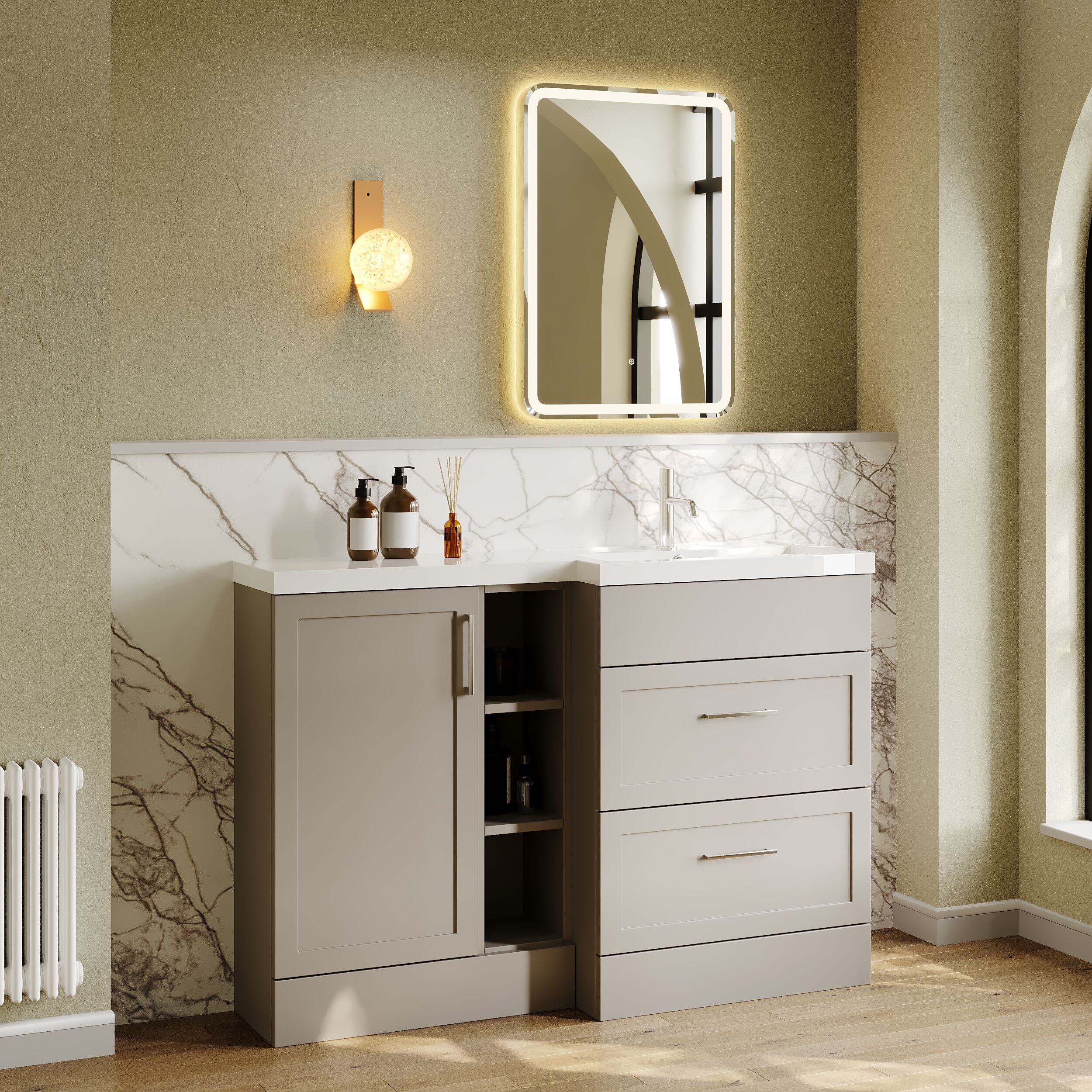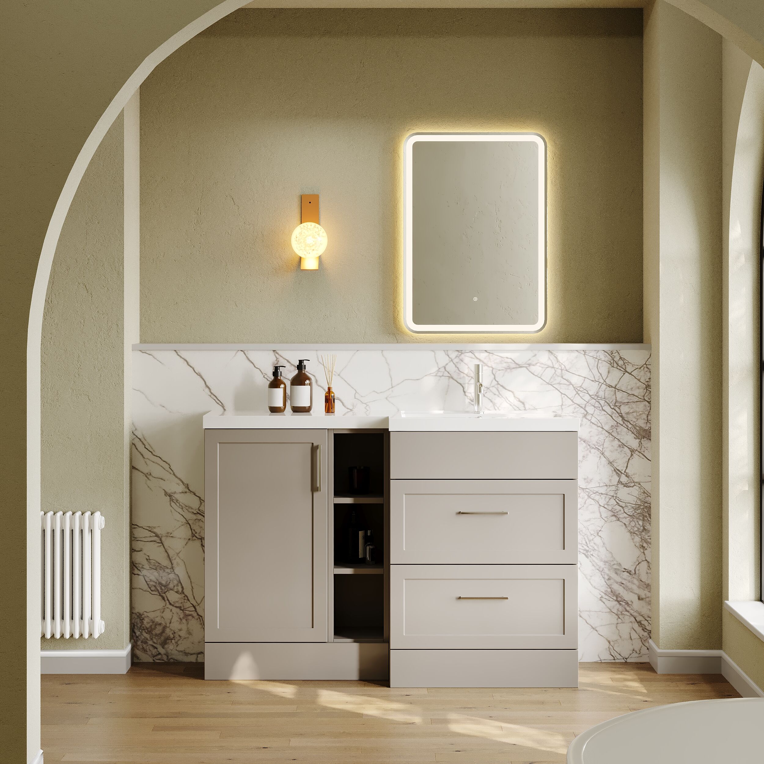 Nuie Lux Fable 1200mm Full Depth Combination Unit & L-Shaped Basin - Right Hand - Pebble Grey