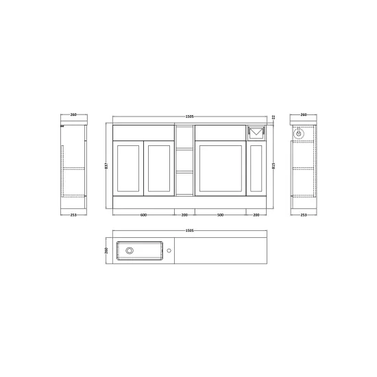 Supplied with a high quality laminate worktop and luxury polymarble basin and handles.