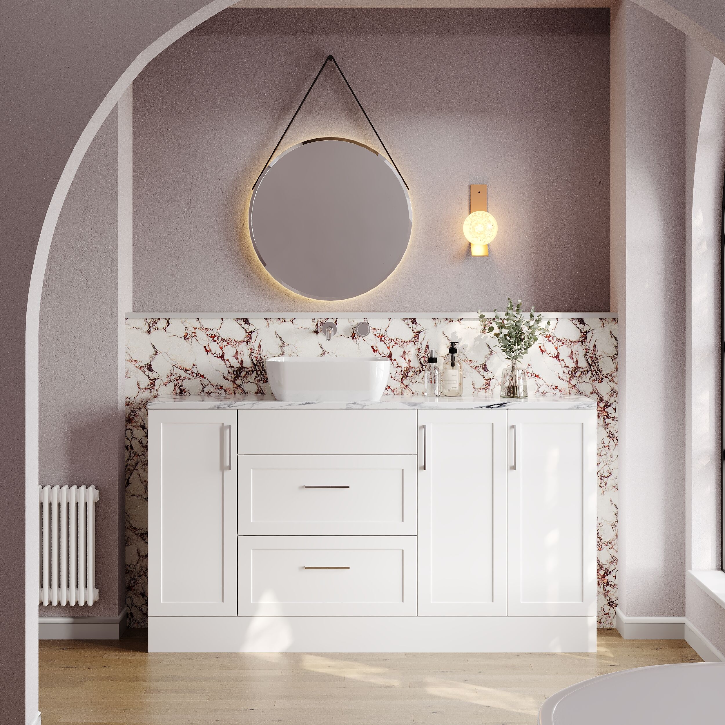 Nuie Lux Fable 1500mm Matt White Traditional Combination Unit & Basin With Handles