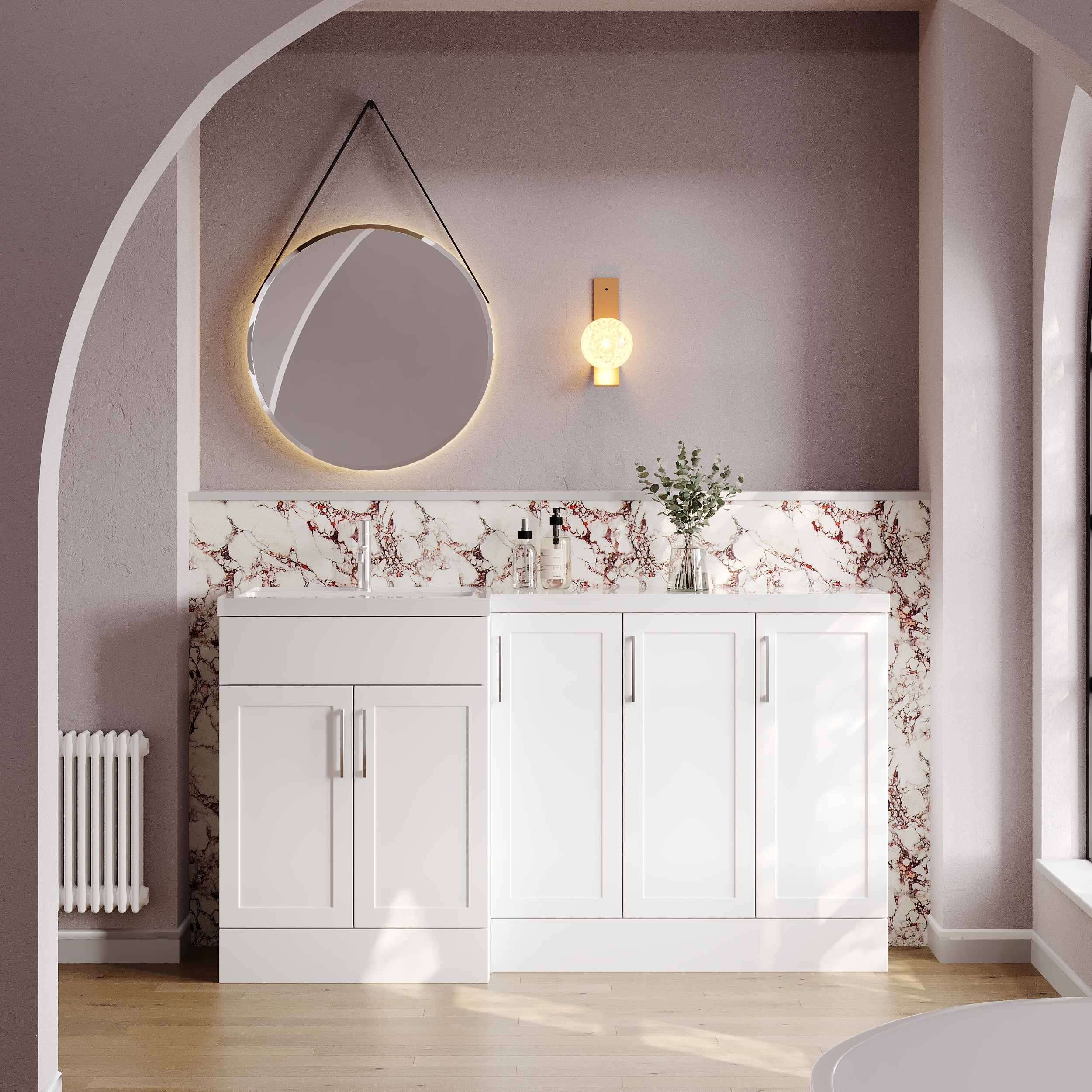 Nuie Lux Fable 1500mm Left Hand Matt White Traditional Combination Unit & L-Shaped Basin