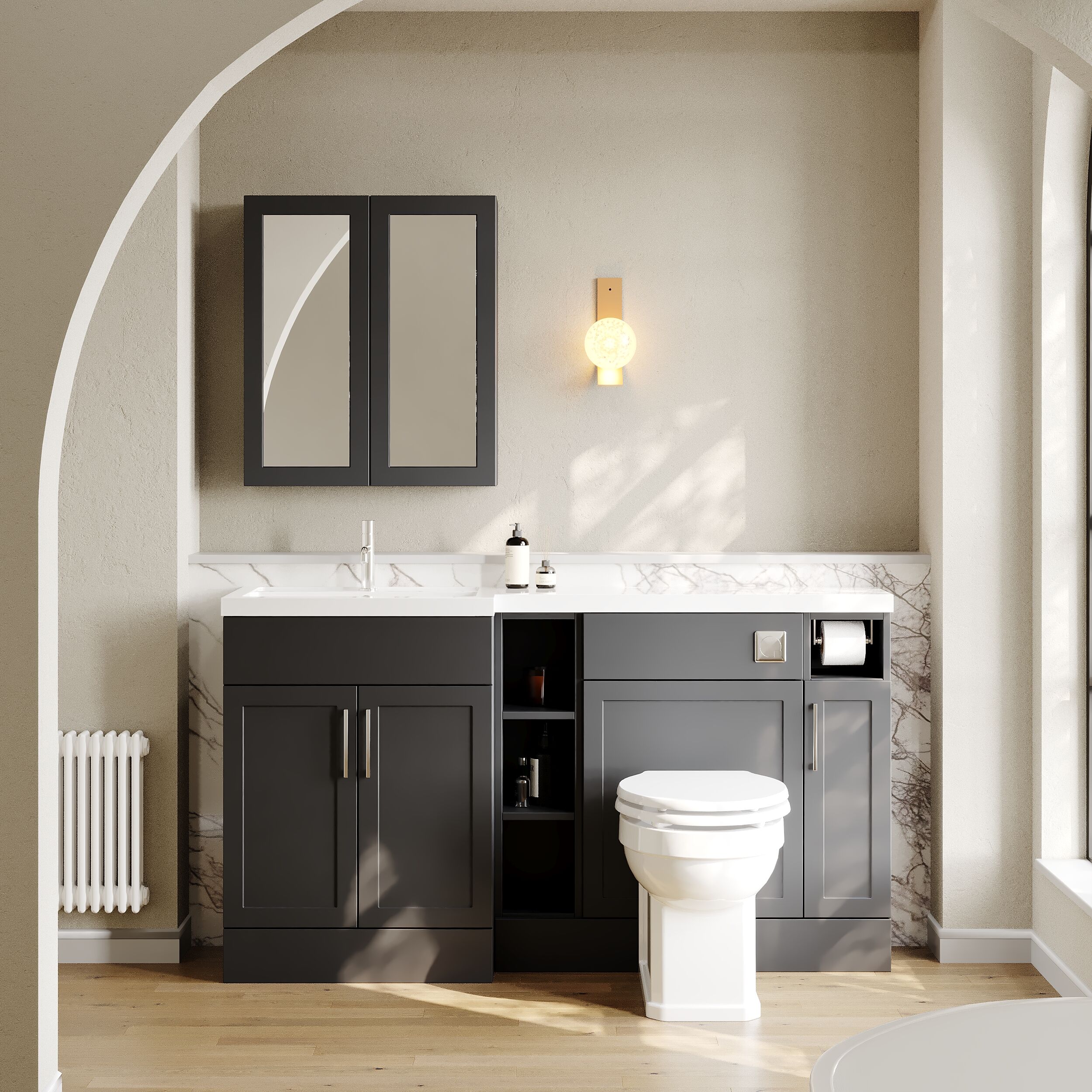 Nuie Lux Fable 1500mm Full Depth Combination Unit & L-Shaped Basin - Left Hand - Soft Black