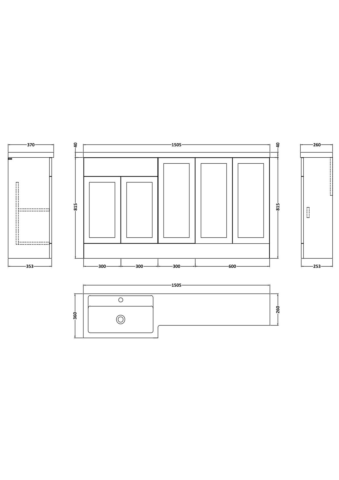Supplied with luxury polymarble left-hand basin, predrilled with 1 tap hole and high quality handles.
