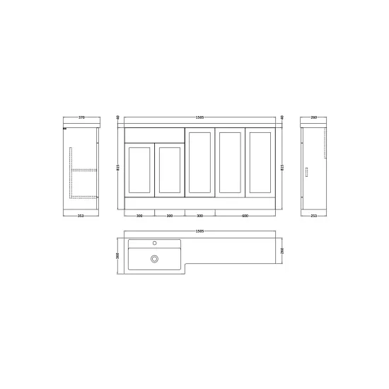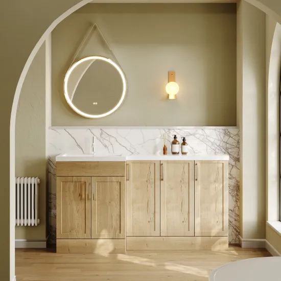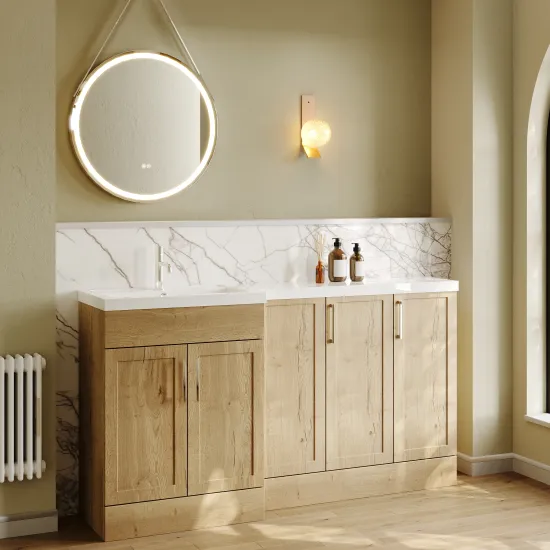 Nuie Lux Fable 1500mm Full Depth Combination Unit & L-Shaped Basin - Left Hand - Autumn Oak