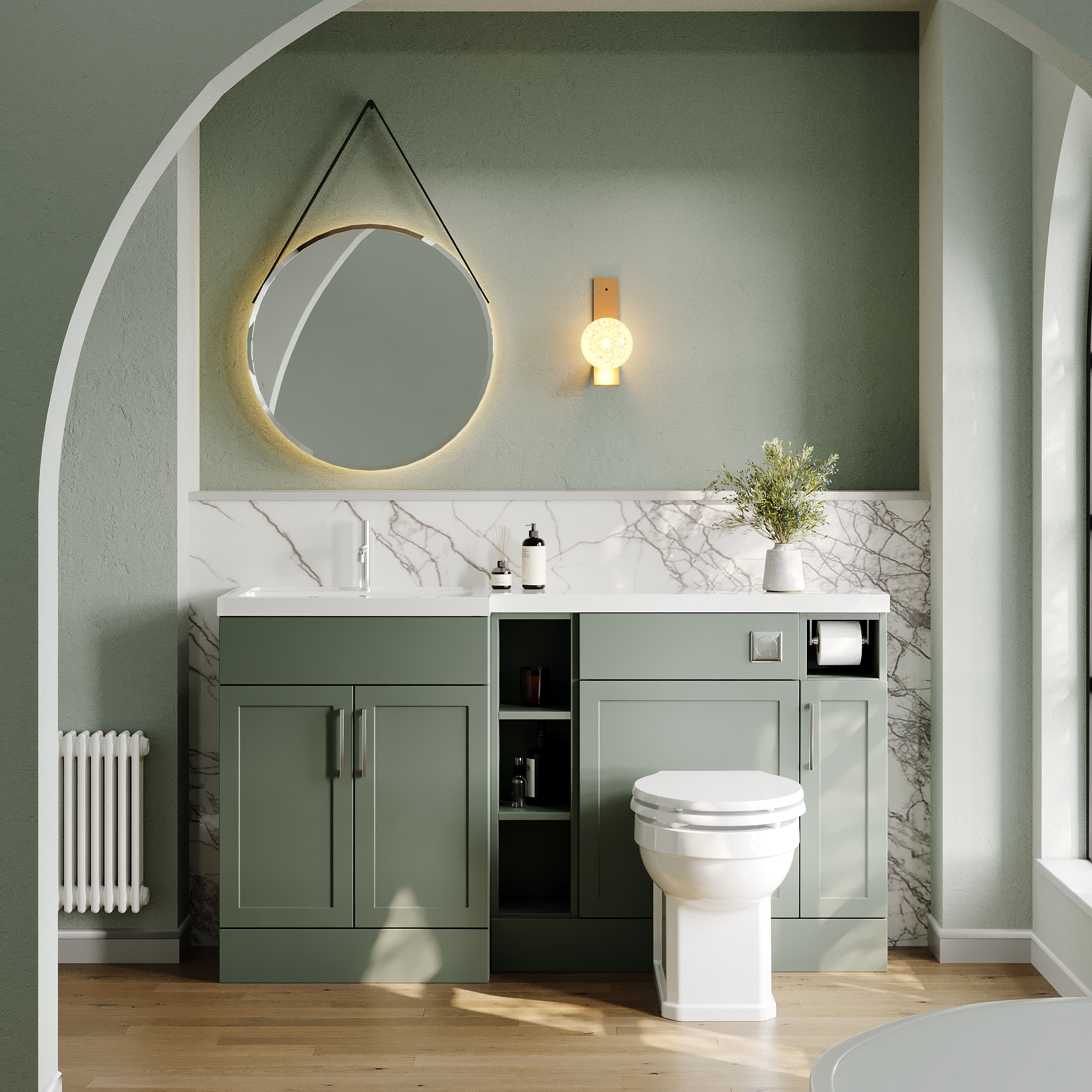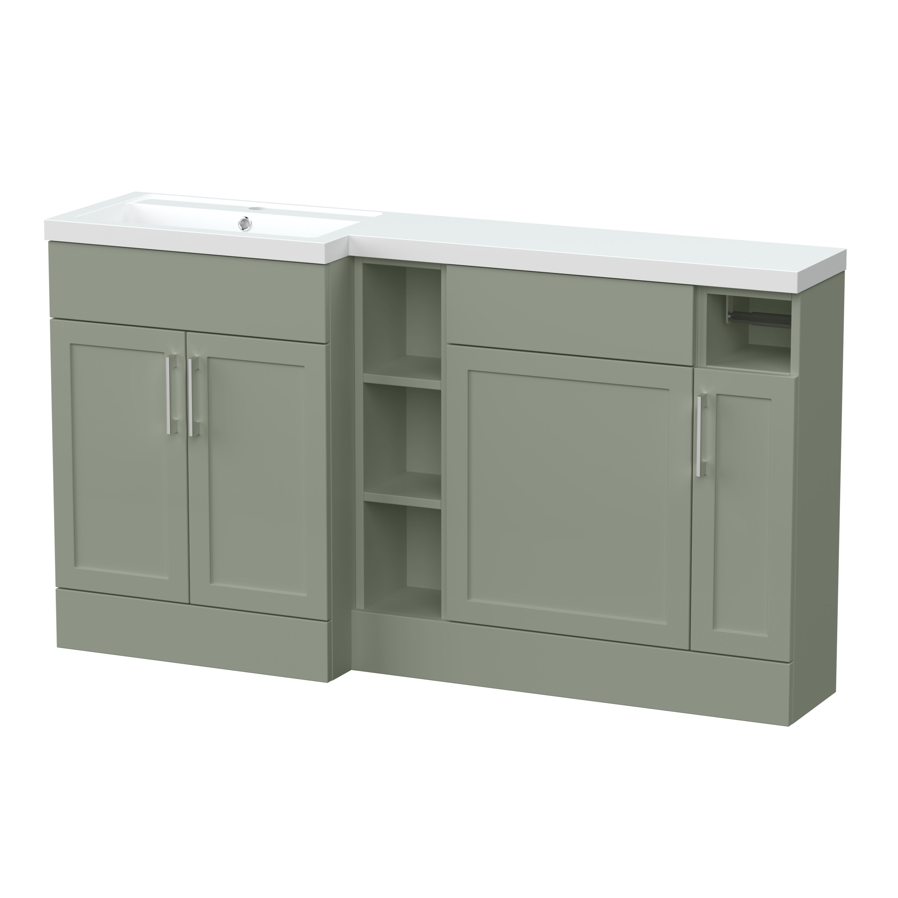 Nuie Lux Fable 1500mm Full Depth Combination Unit & L-Shaped Basin - Left Hand - Fern Green