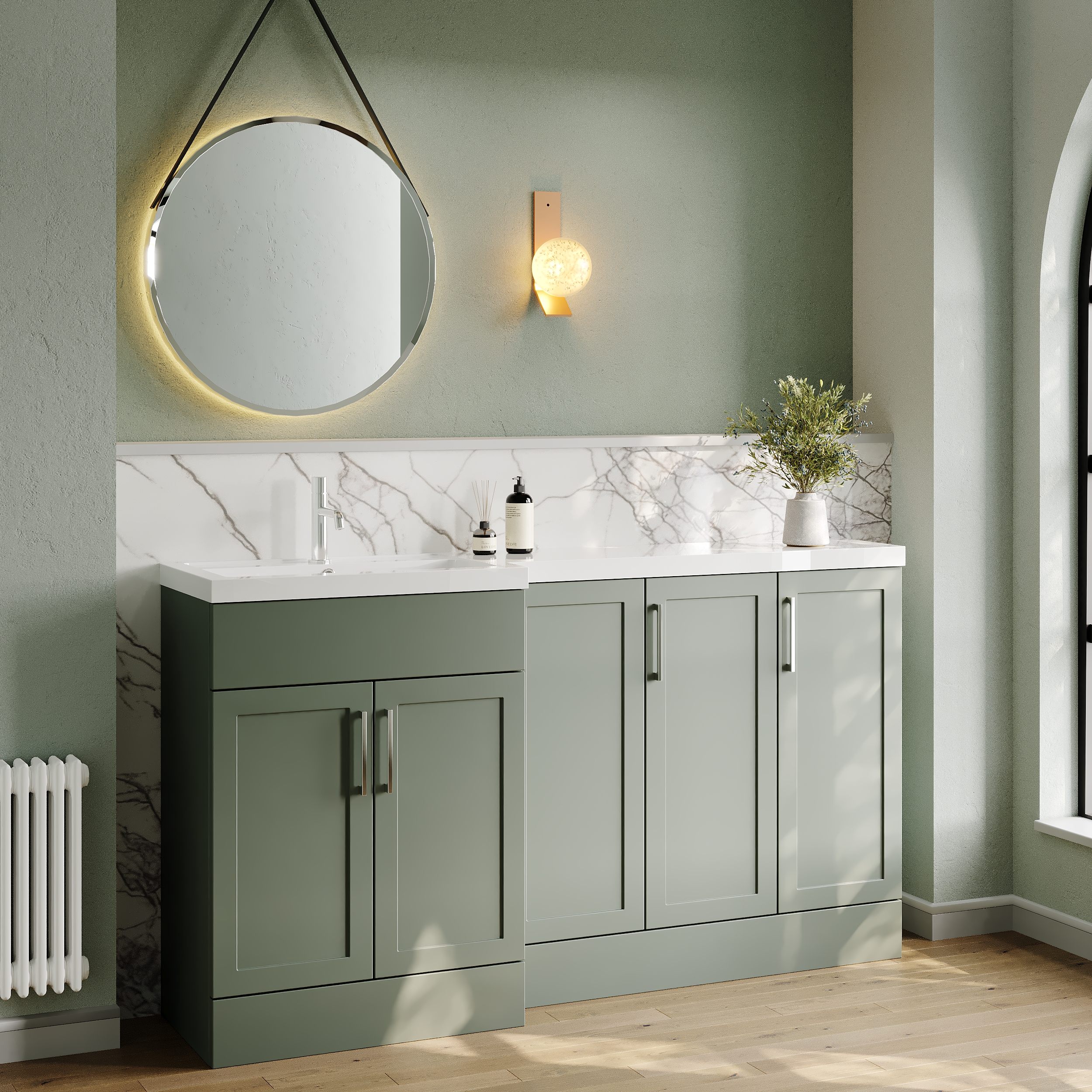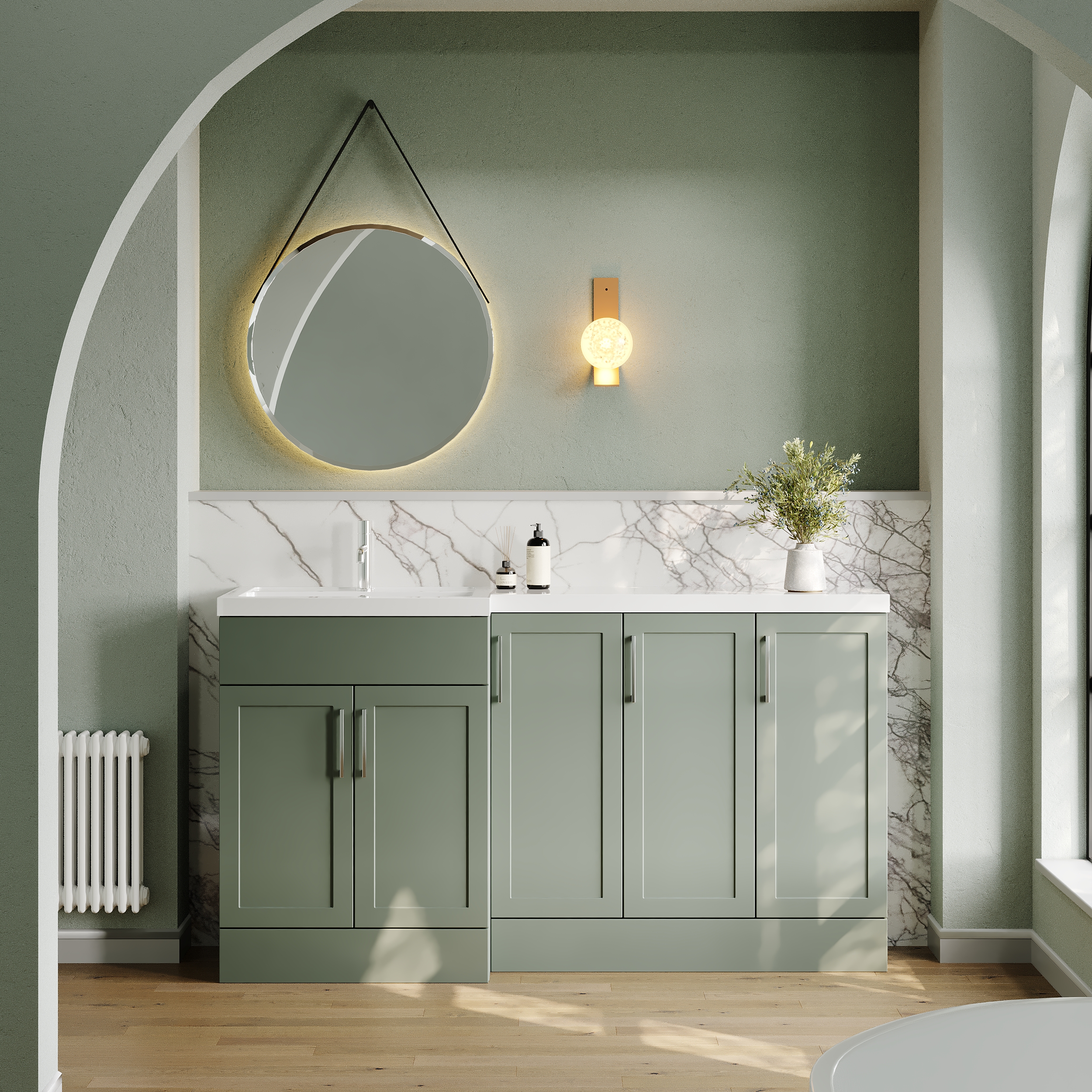 Nuie Lux Fable 1500mm Full Depth Combination Unit & L-Shaped Basin - Left Hand - Fern Green