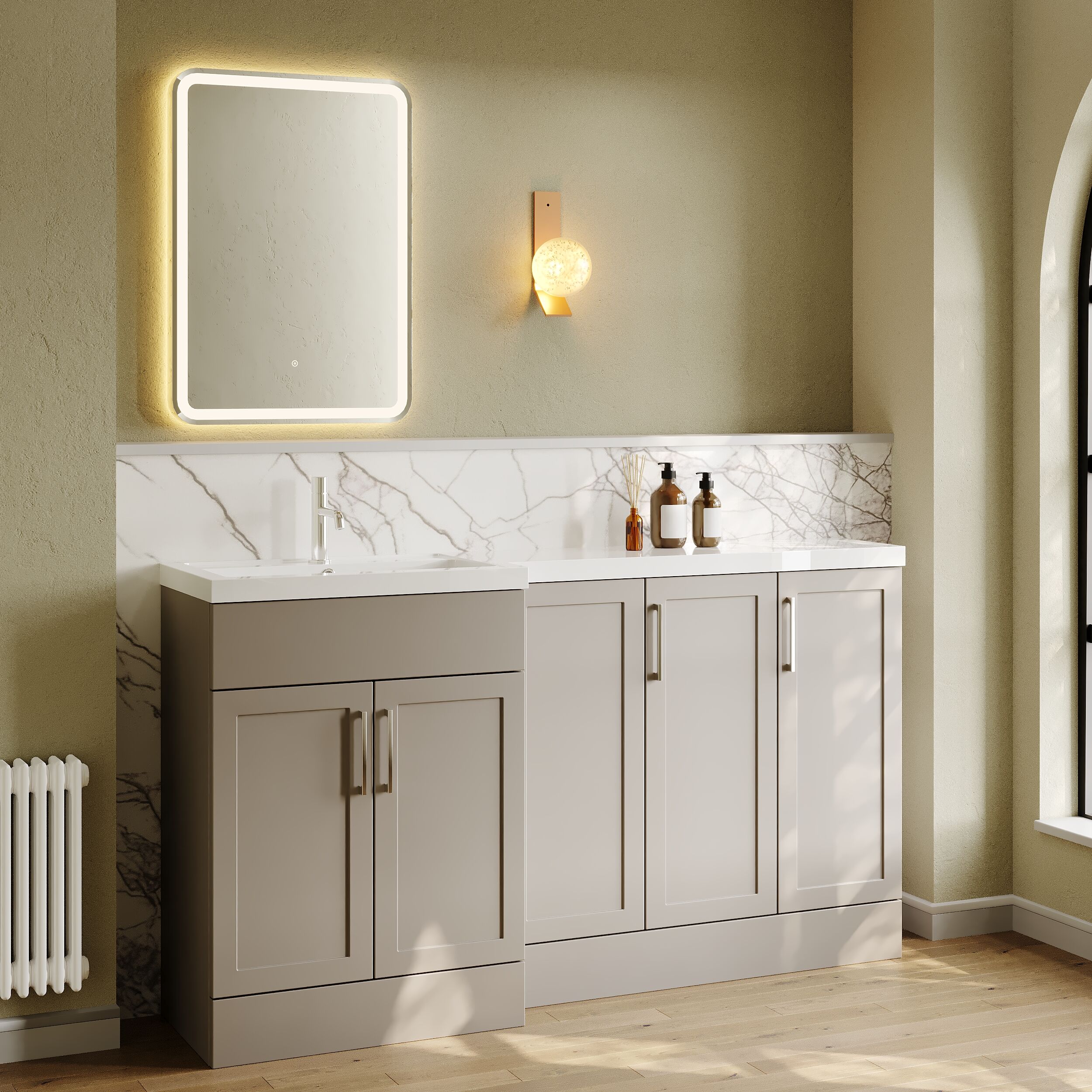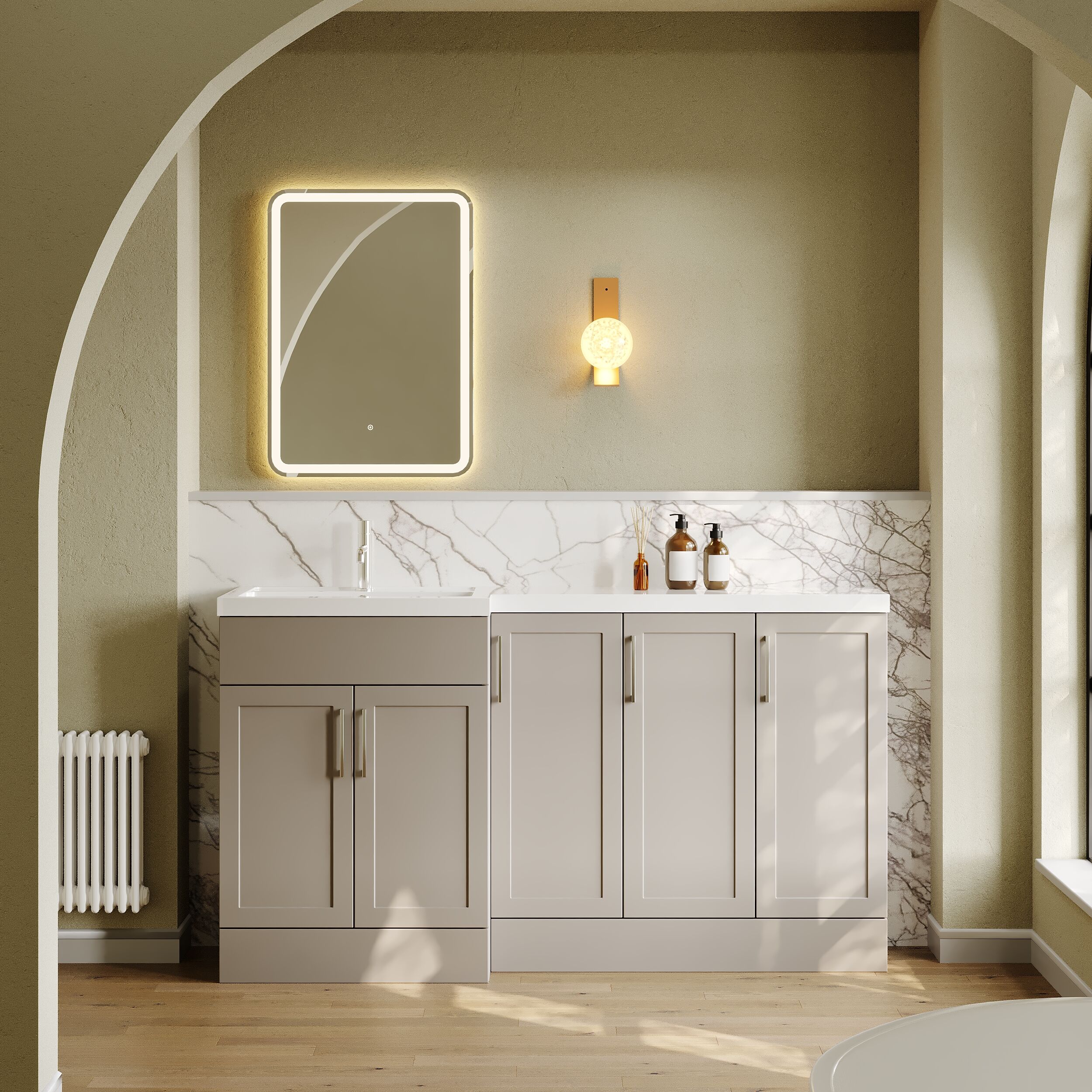 Nuie Lux Fable 1500mm Full Depth Combination Unit & L-Shaped Basin - Left Hand - Pebble Grey