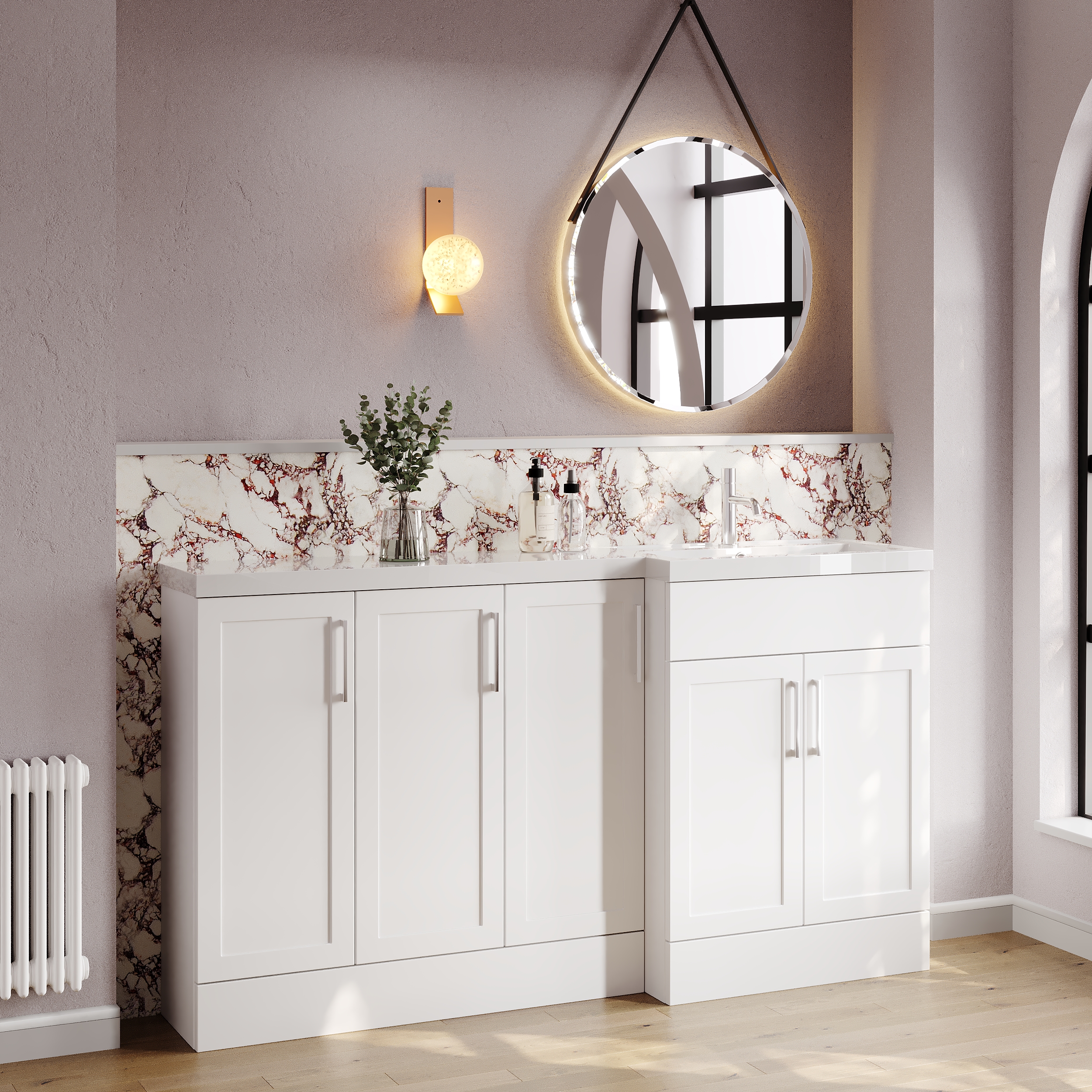 Nuie Lux Fable 1500mm Matt White Combination Unit with L-Shaped Basin Right Hand & Soft Close Doors