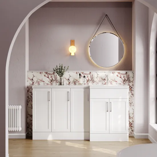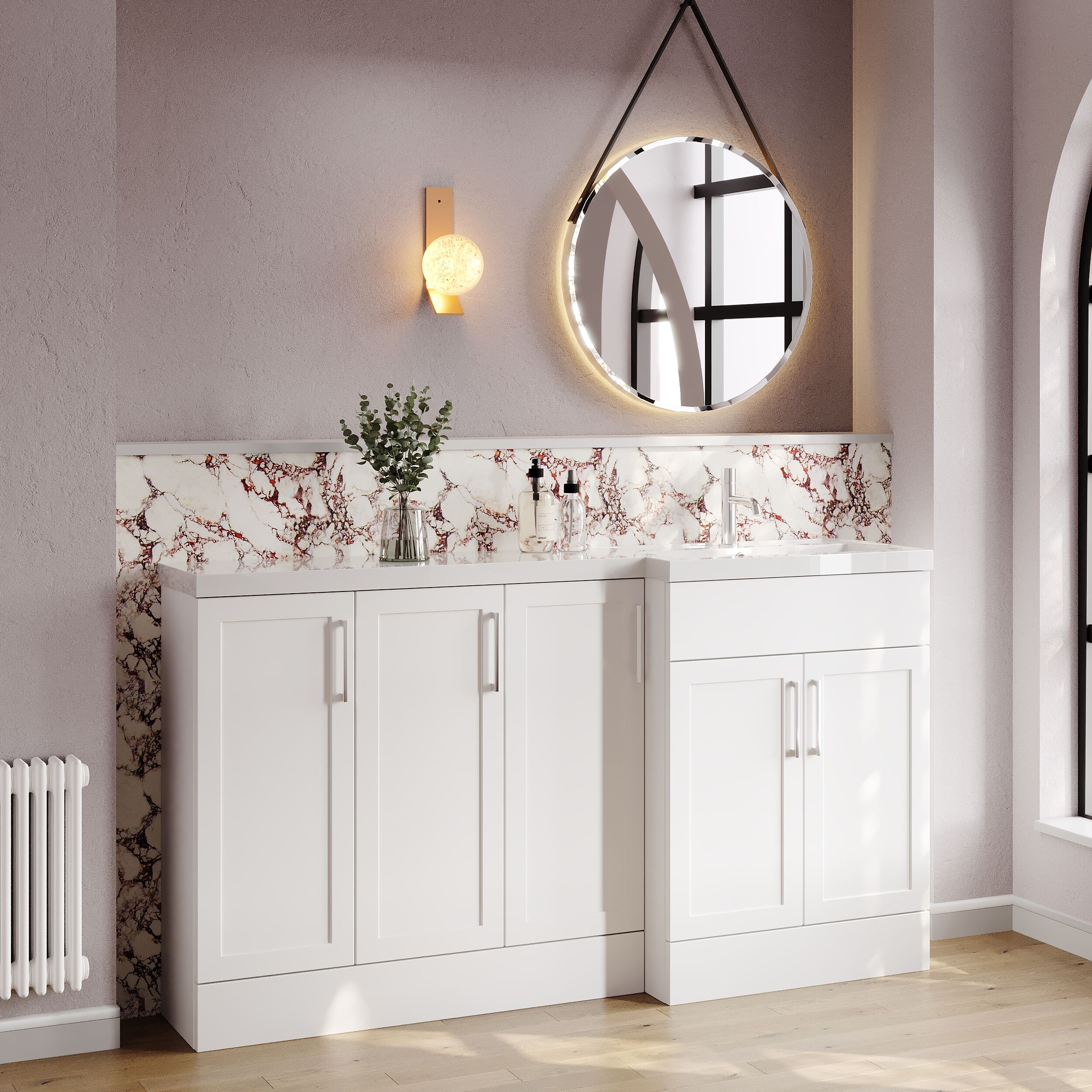 Nuie Lux Fable 1500mm Full Depth Combination Unit & L-Shaped Basin - Right Hand - Matt White