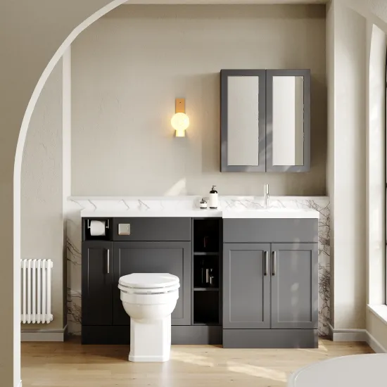 Nuie Lux Fable 1500mm Full Depth Combination Unit & L-Shaped Basin - Right Hand - Soft Black