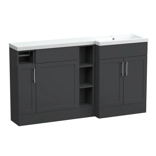 Nuie Lux Fable 1500mm Soft Black Combination Unit With L-Shaped Right Hand Basin