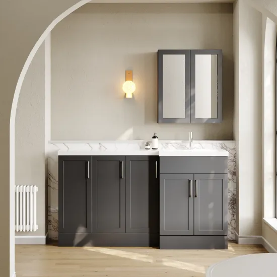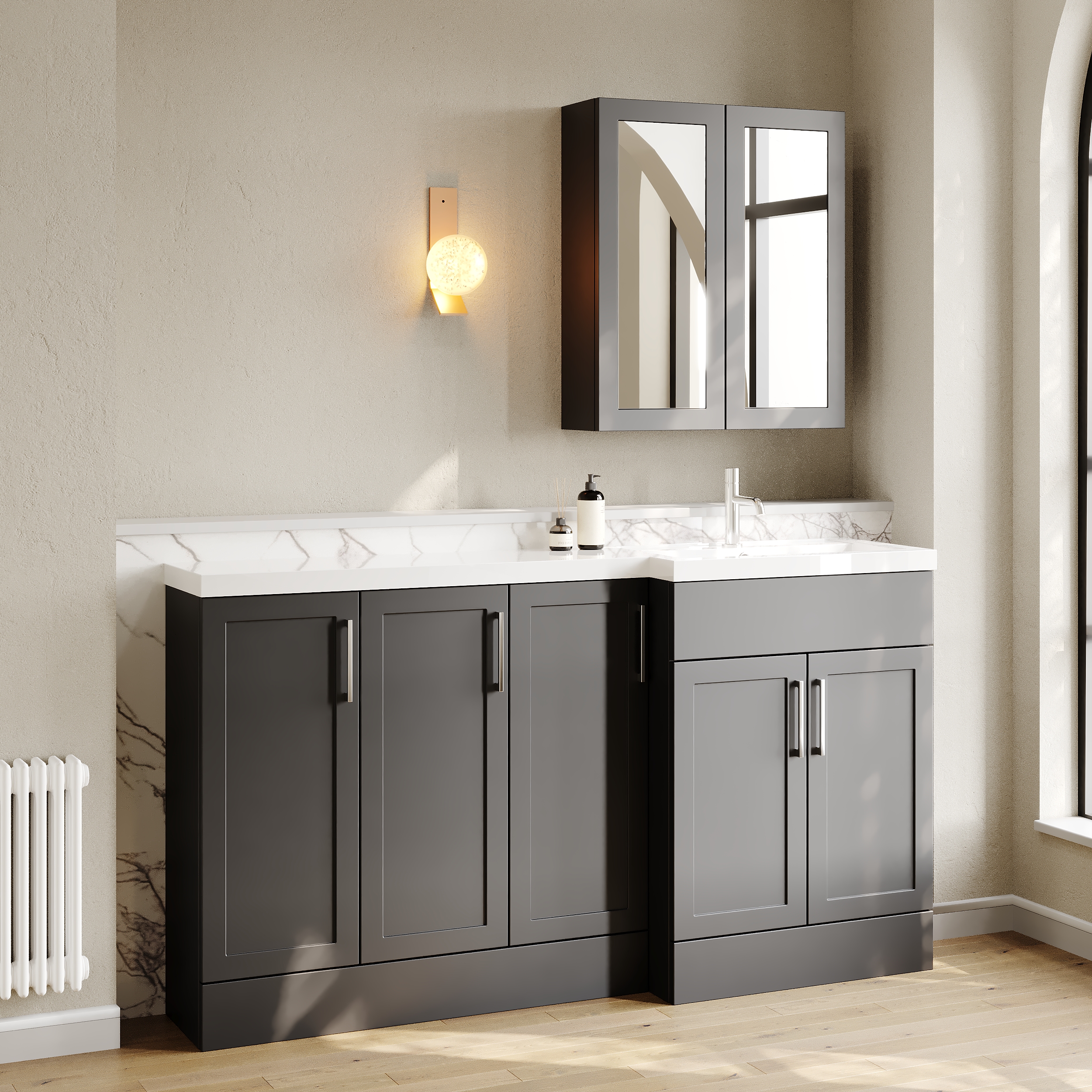 Nuie Lux Fable 1500mm Full Depth Combination Unit & L-Shaped Basin - Right Hand - Soft Black