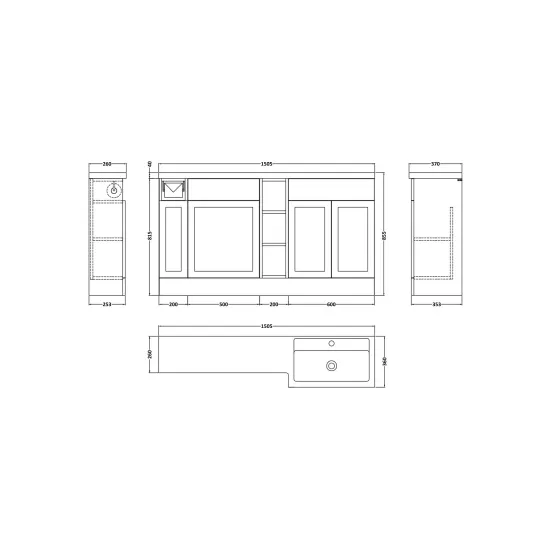 Nuie Lux Fable 1500mm Full Depth Combination Unit & L-Shaped Basin - Right Hand - Autumn Oak