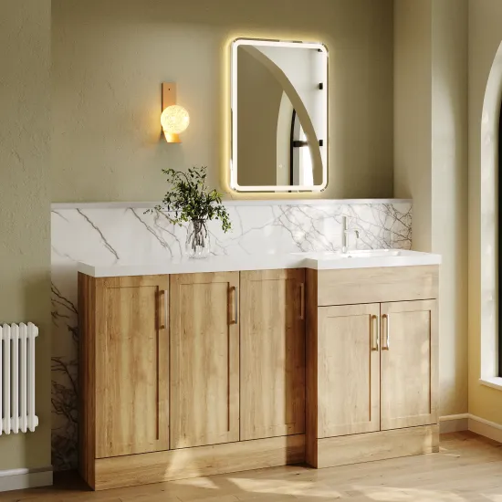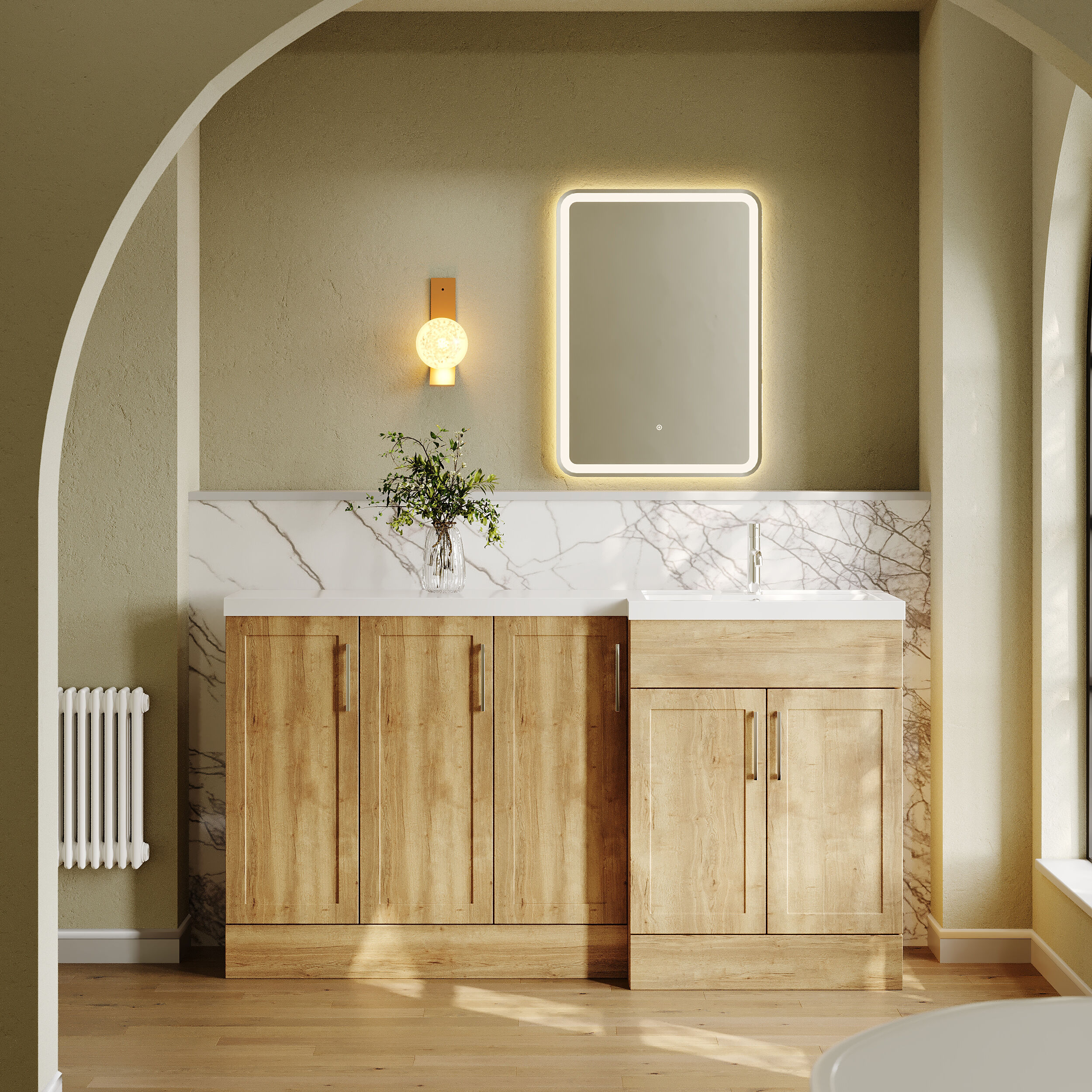 Nuie Lux Fable 1500mm Full Depth Combination Unit & L-Shaped Basin - Right Hand - Autumn Oak