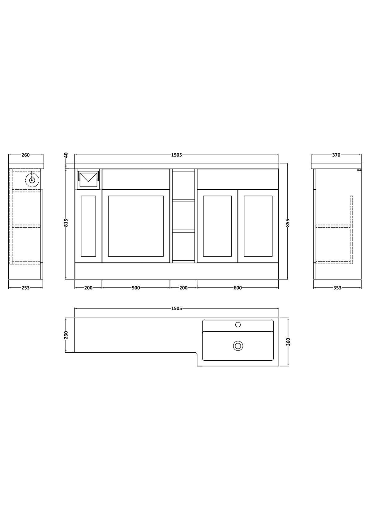 Supplied with luxury polymarble right-hand basin, predrilled with 1 tap hole and high quality handles.