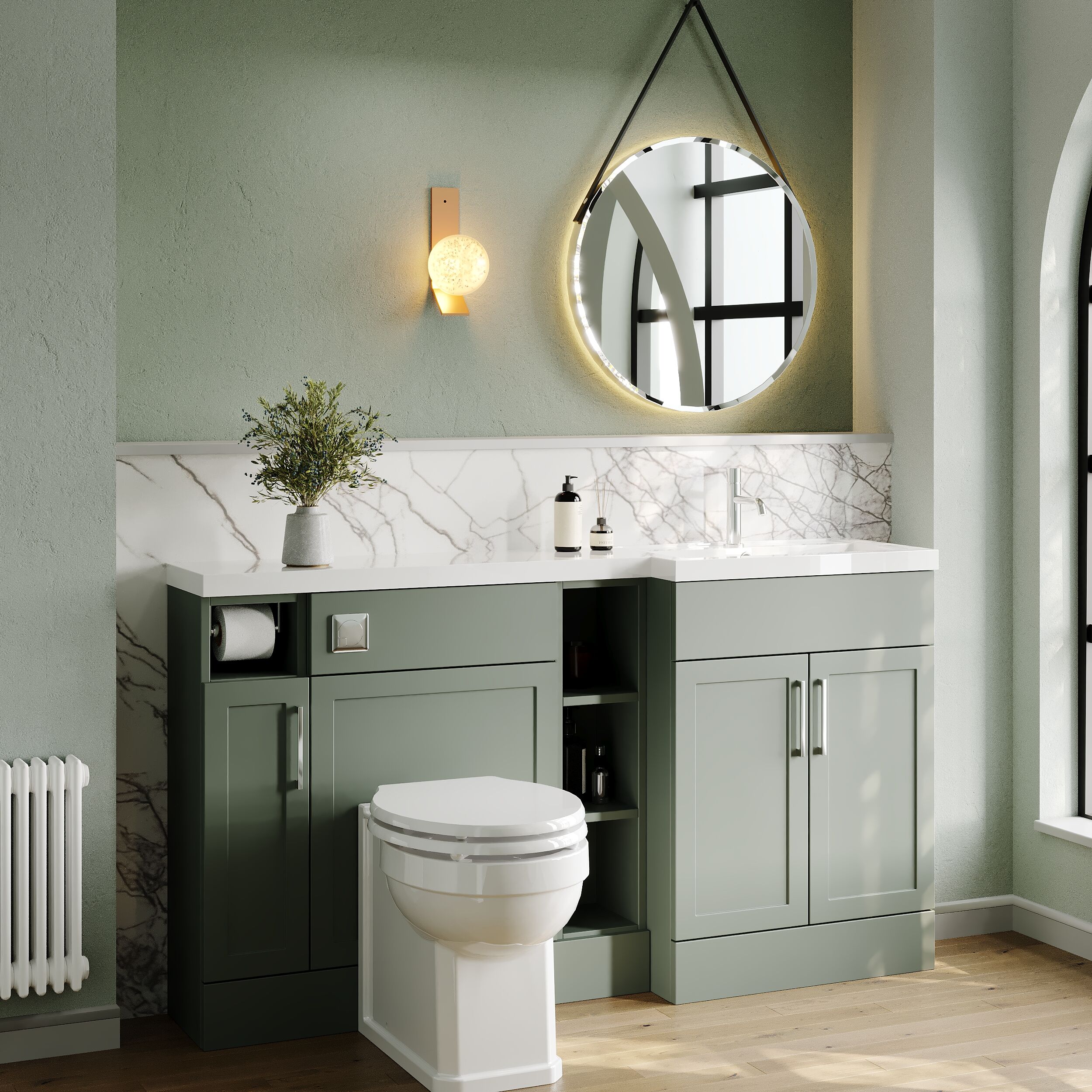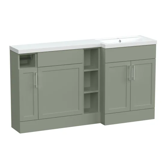 Nuie Lux Fable 1500mm Fern Green Combination Unit & L-Shaped Basin - Right Hand Including Handles