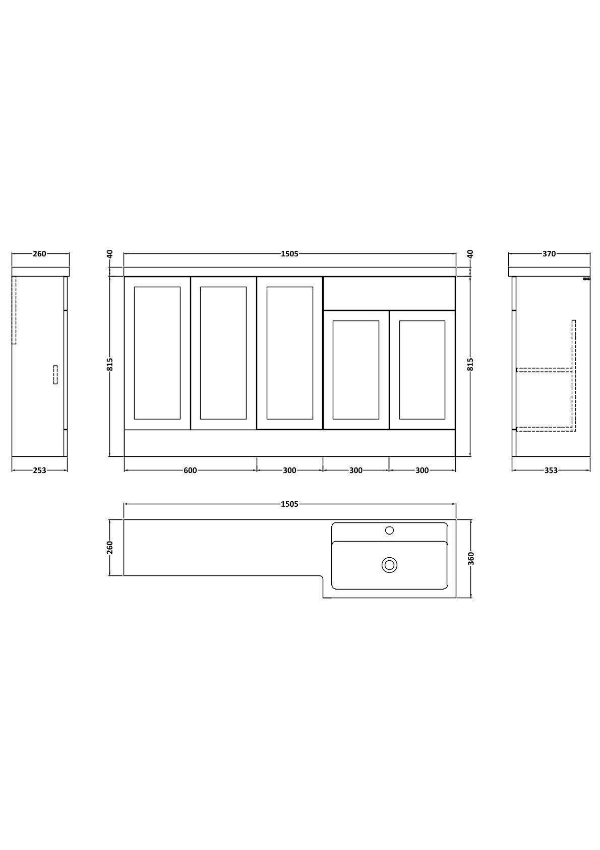 Supplied with luxury polymarble right-hand basin, predrilled with 1 tap hole and high quality handles.