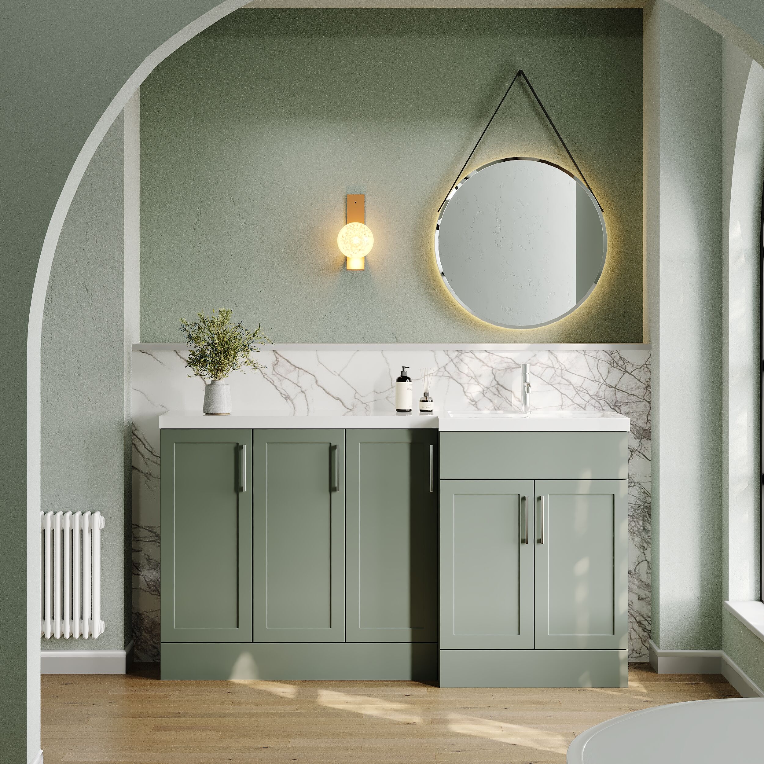 Nuie Lux Fable 1500mm Full Depth Combination Unit & L-Shaped Basin - Right Hand - Fern Green