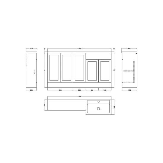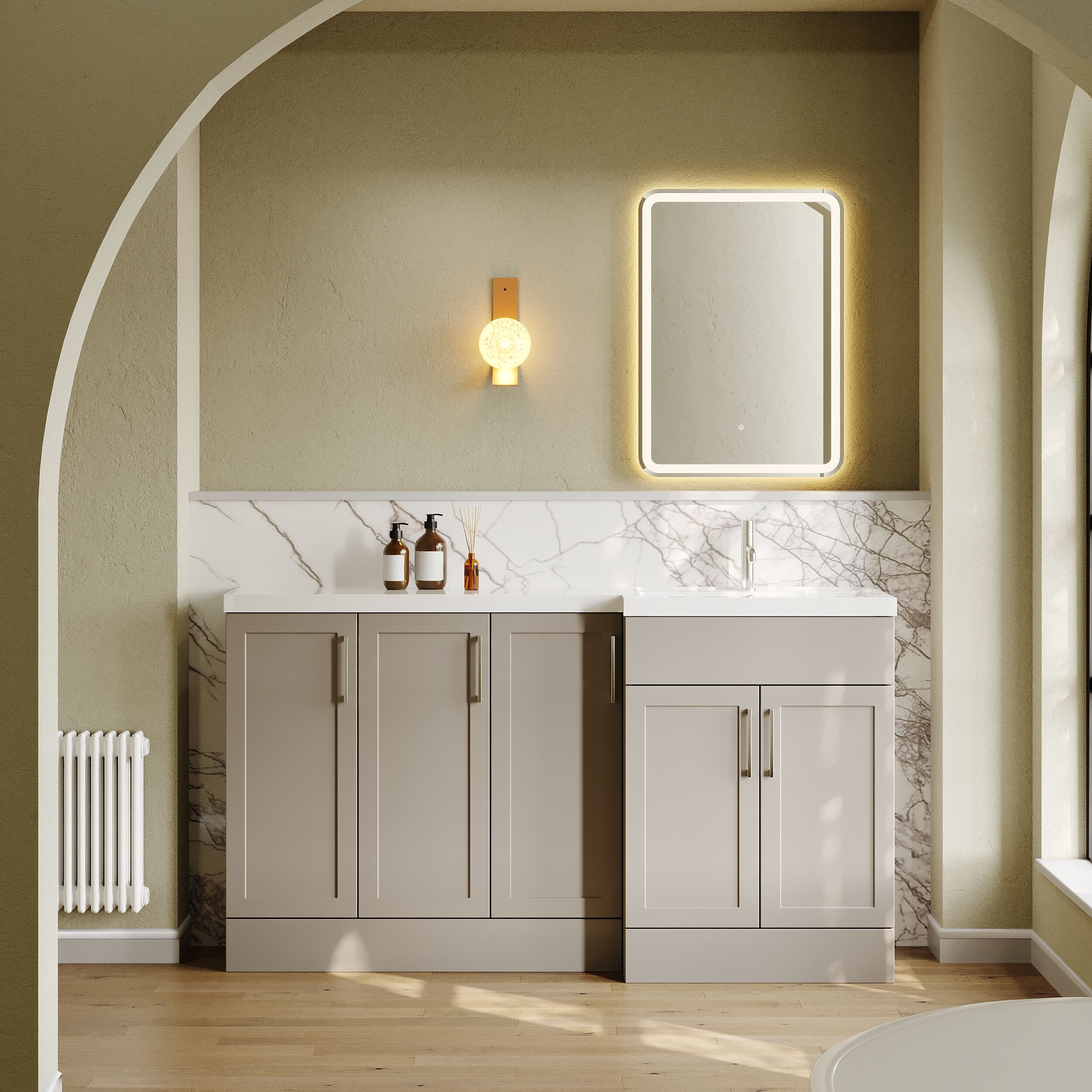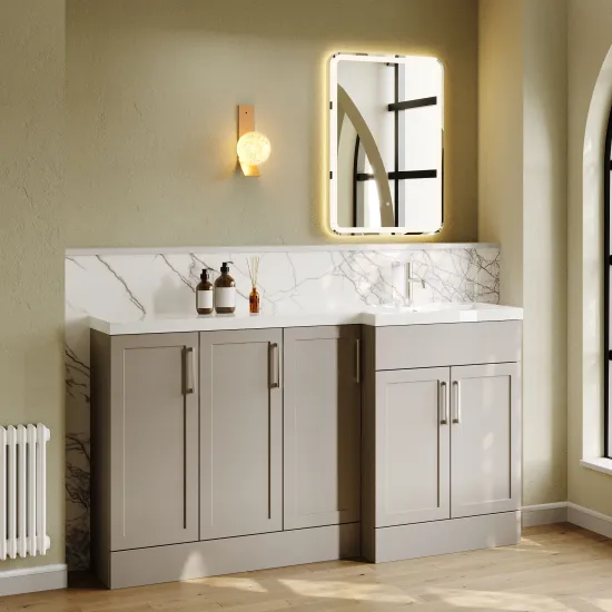 Nuie Lux Fable 1500mm Pebble Grey Combination Unit & L-Shaped Basin Right Hand Including Handles