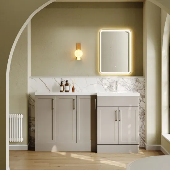 Nuie Lux Fable 1500mm Full Depth Combination Unit & L-Shaped Basin - Right Hand - Pebble Grey