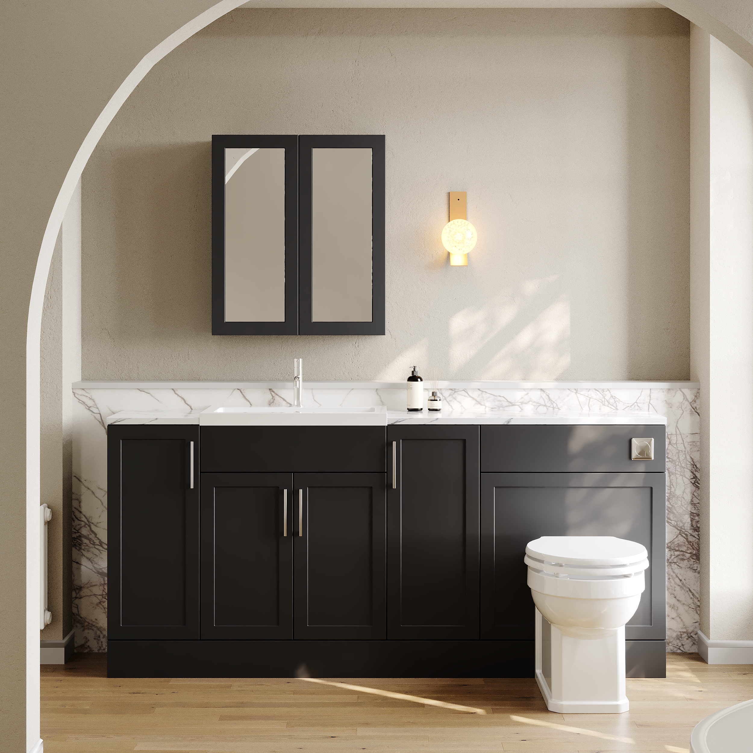 Nuie Lux Fable 1800mm Full Depth Combination Unit & Basin - Soft Black