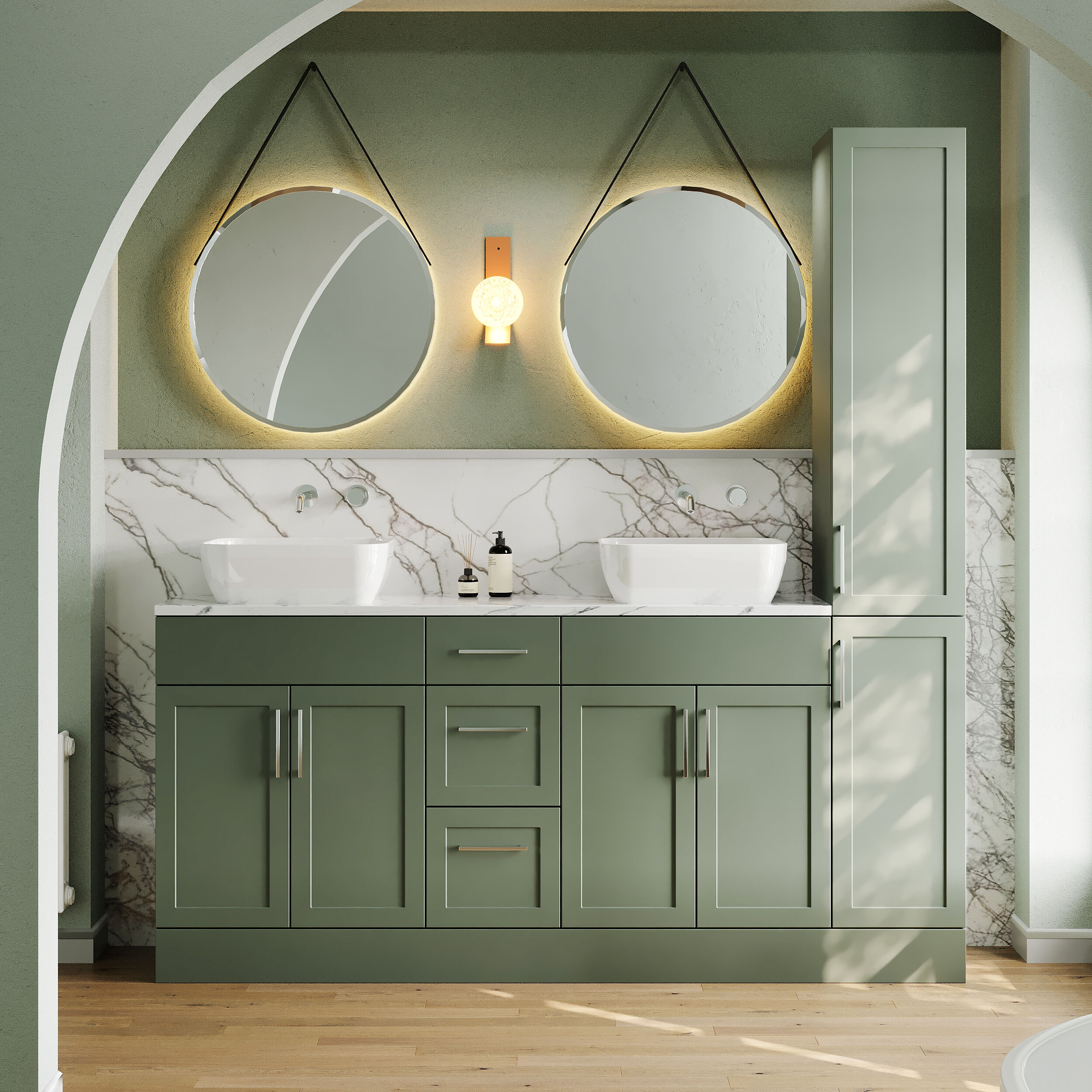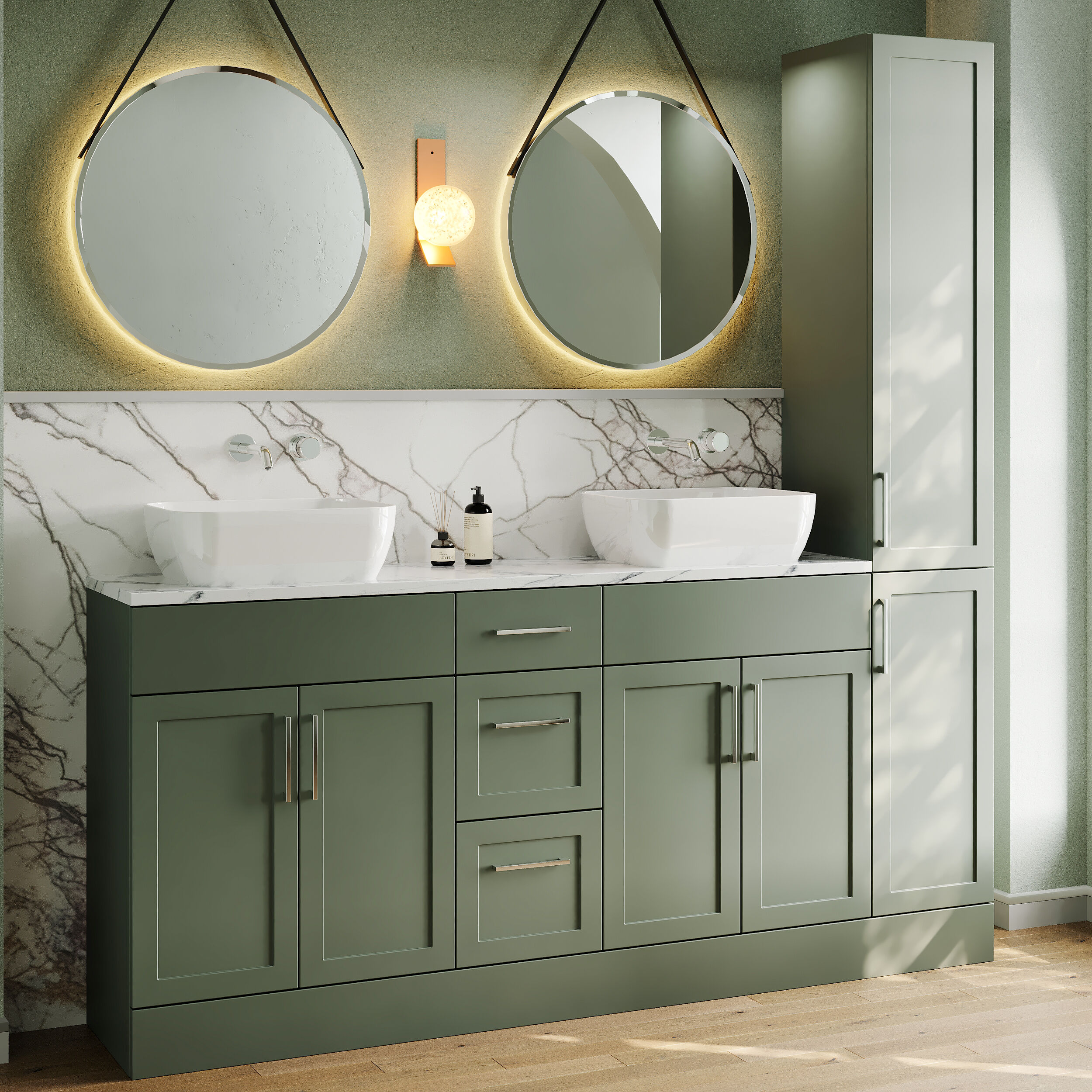 Nuie Lux Fable 1805mm Fern Green Floor Standing Combination Unit & Basin With Soft Close Doors