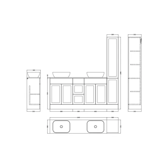 Nuie Lux Fable 1800mm Combination Unit & Basin With Handles