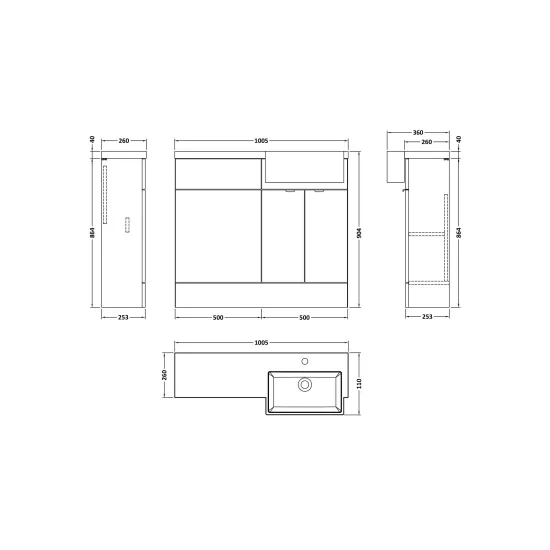 Hudson Reed Fusion 1000mm Floor Standing 2 Door Vanity & Toilet Combination with Right Hand Semi Recessed Basin