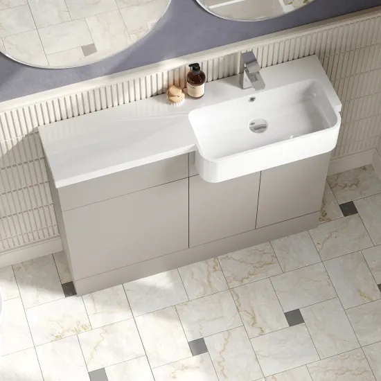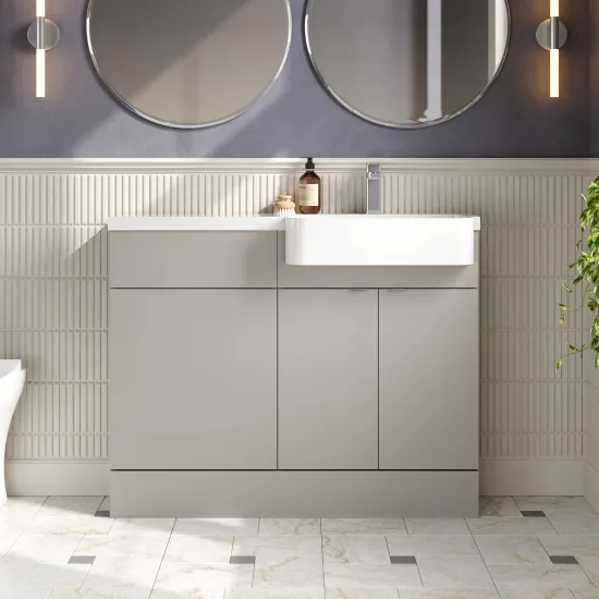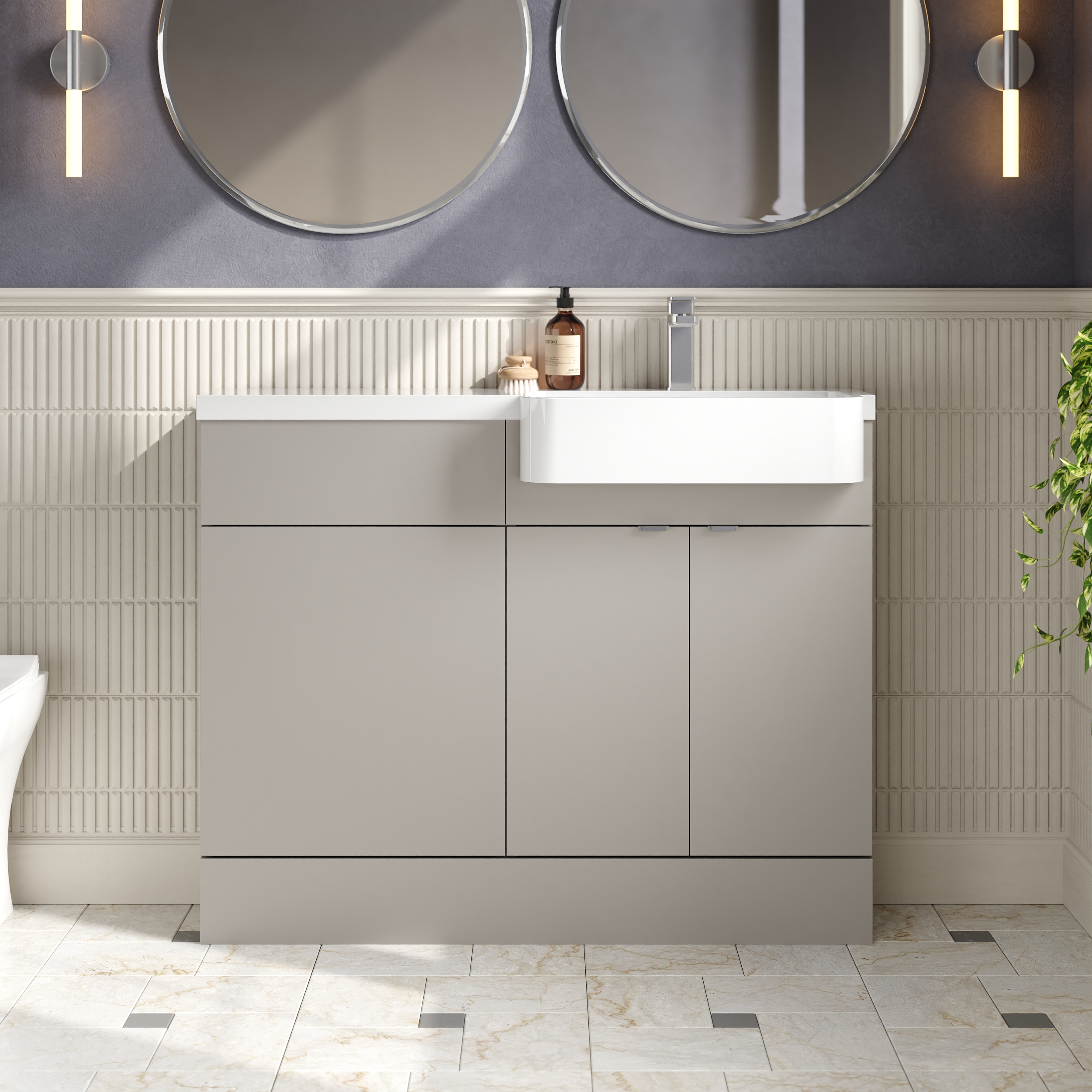 Hudson Reed Fusion 1100mm Combination Unit & Right Hand Semi Recessed Basin - Pebble grey