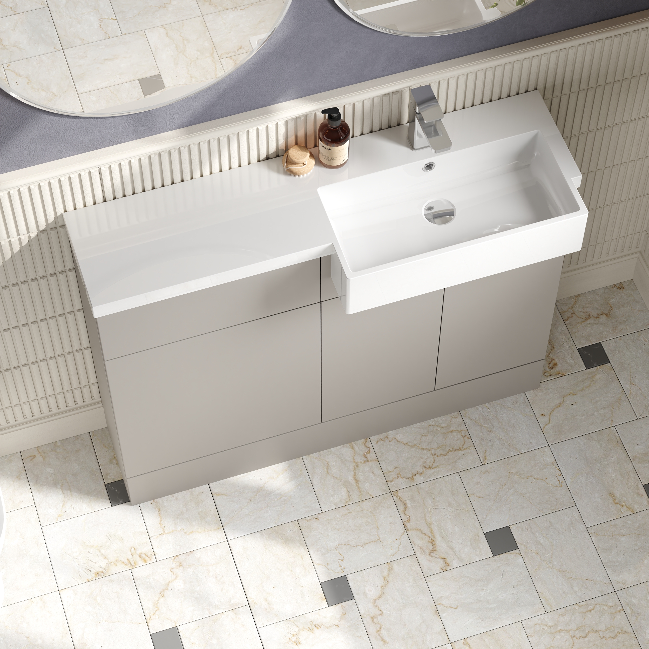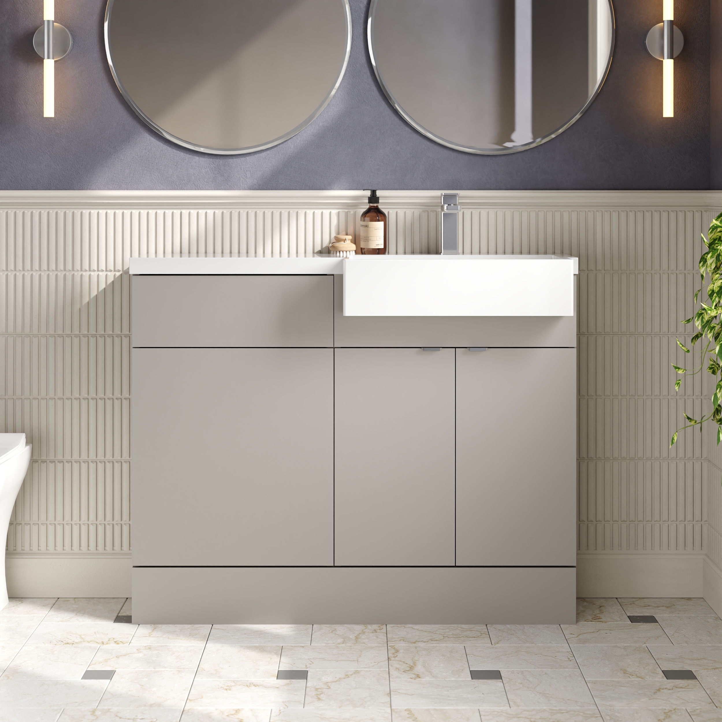 Hudson Reed Fusion 1100mm Combination Unit & Right Hand Semi Recessed Basin - Pebble grey