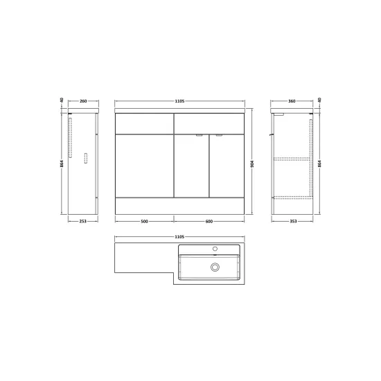 Hudson Reed Fusion 1100mm Floor Standing 2 Door Vanity Basin & Right Hand Toilet Combination