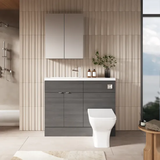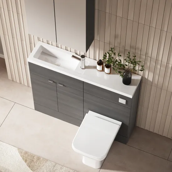Hudson Reed Fusion Floor Standing 2 Door Vanity Basin & WC Combination Compact 1100mm - Anthracite Woodgrain
