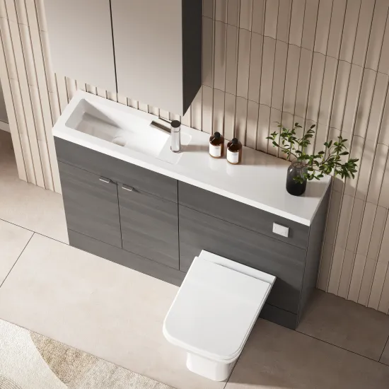 Hudson Reed Fusion Floor Standing 2 Door Vanity Basin & WC Combination Compact 1200mm - Anthracite Woodgrain