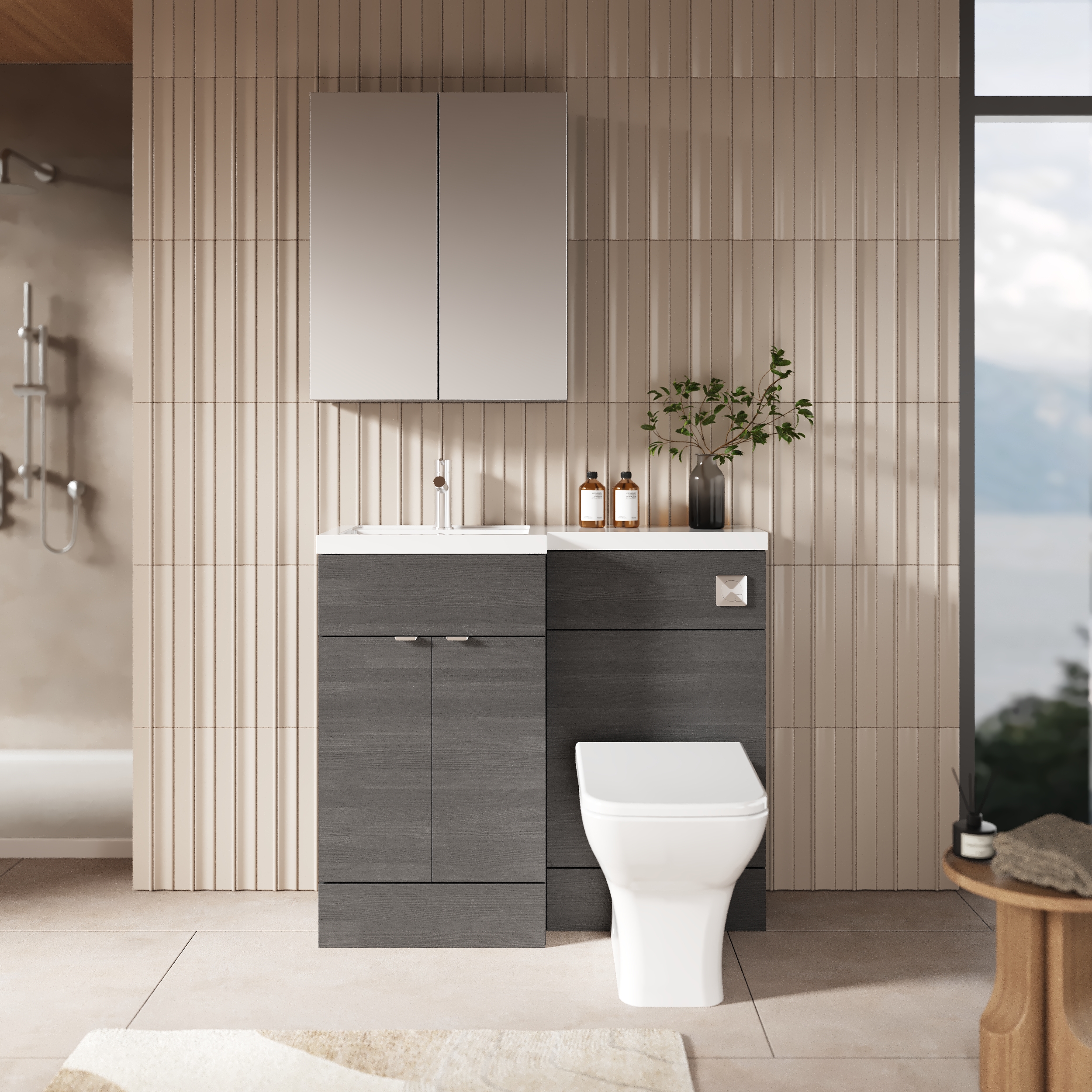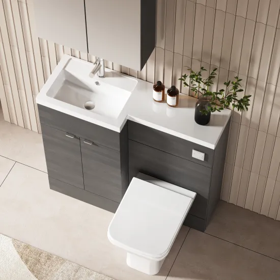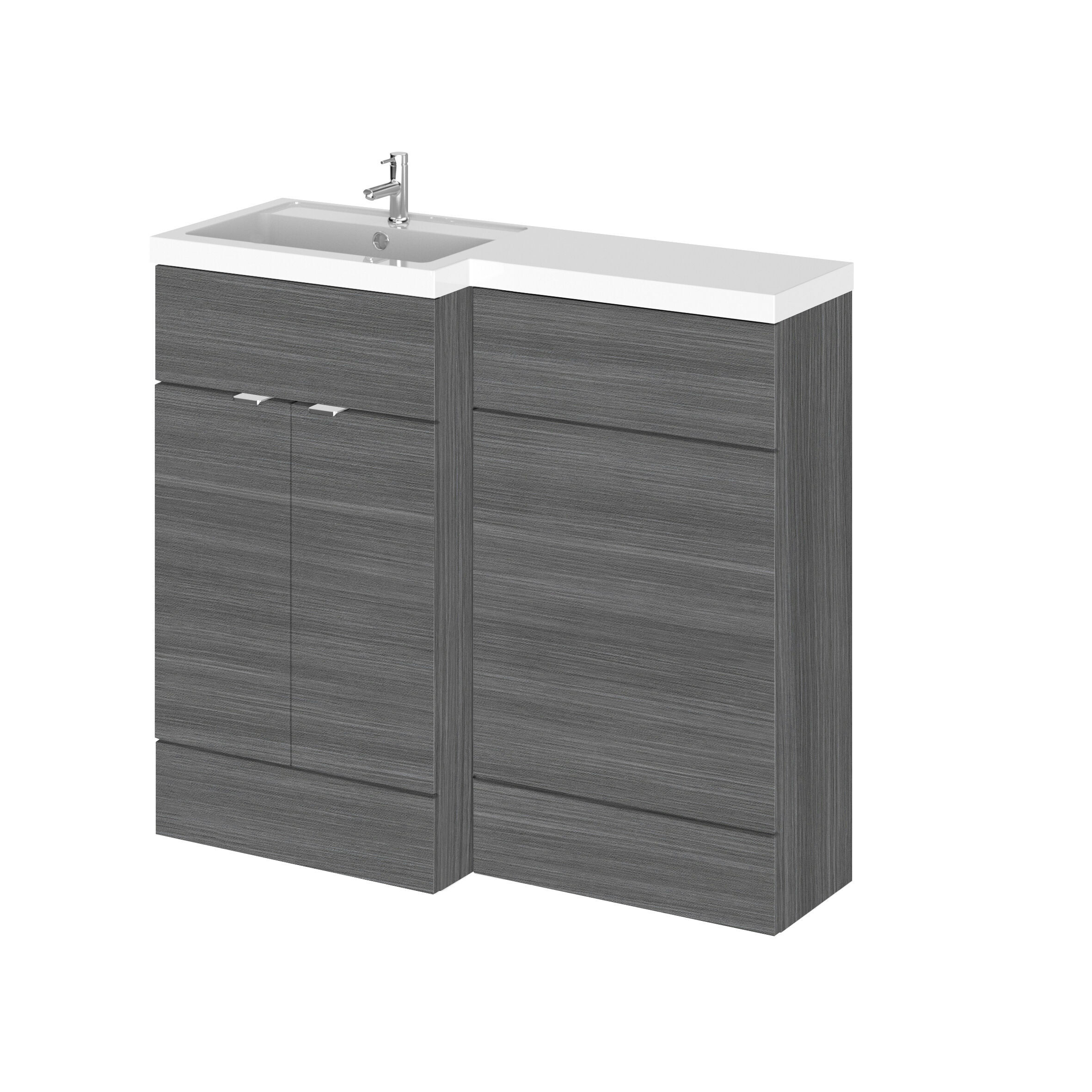 Hudson Reed Fusion Floor Standing 2 Door Vanity Basin & WC Left Hand Combination 1000mm - Anthracite Woodgrain