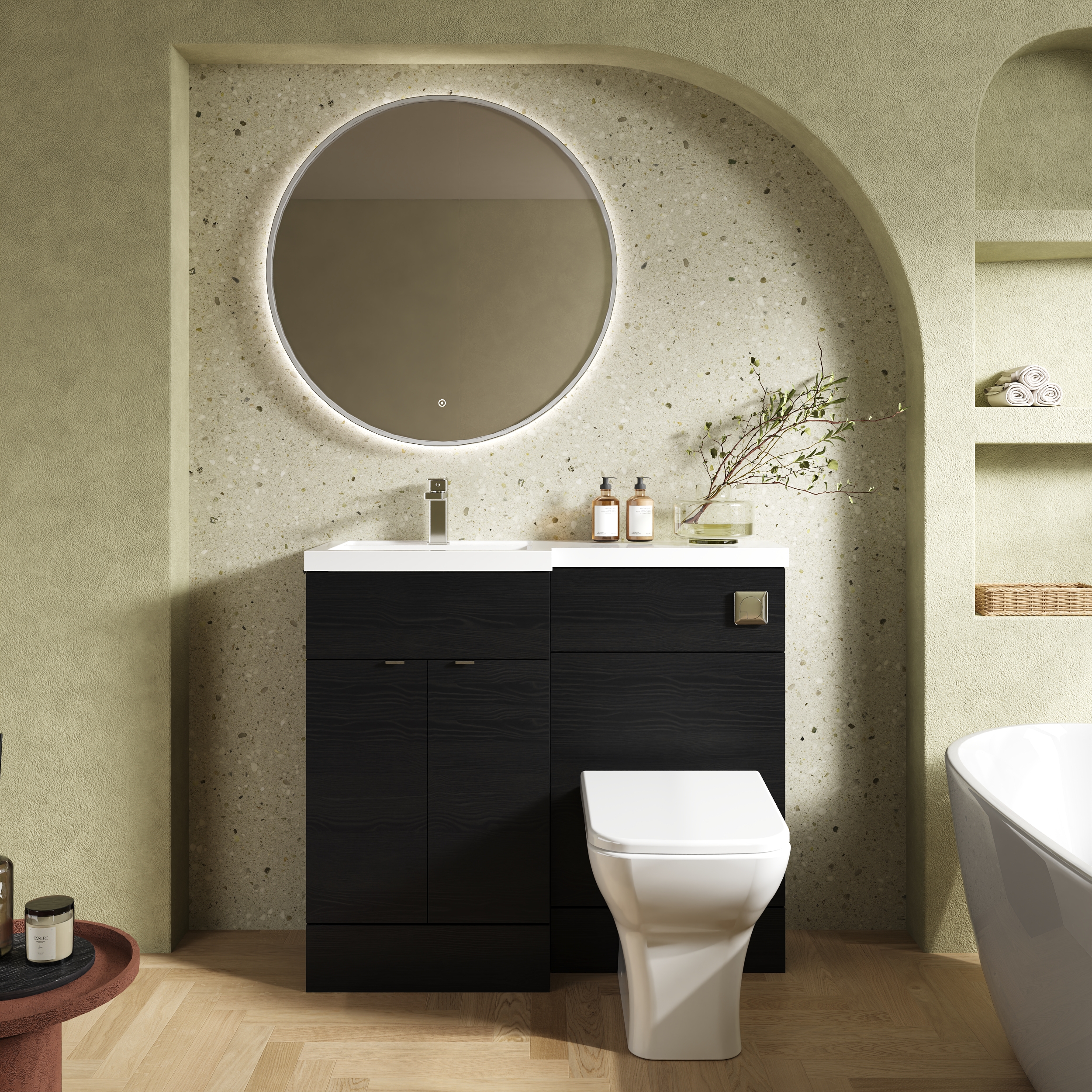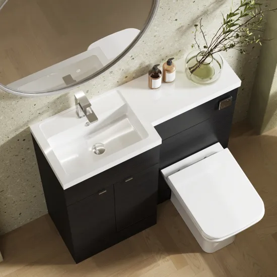 Hudson Reed Fusion Floor Standing 2 Door Vanity Basin & WC Left Hand Combination 1000mm - Hacienda Black