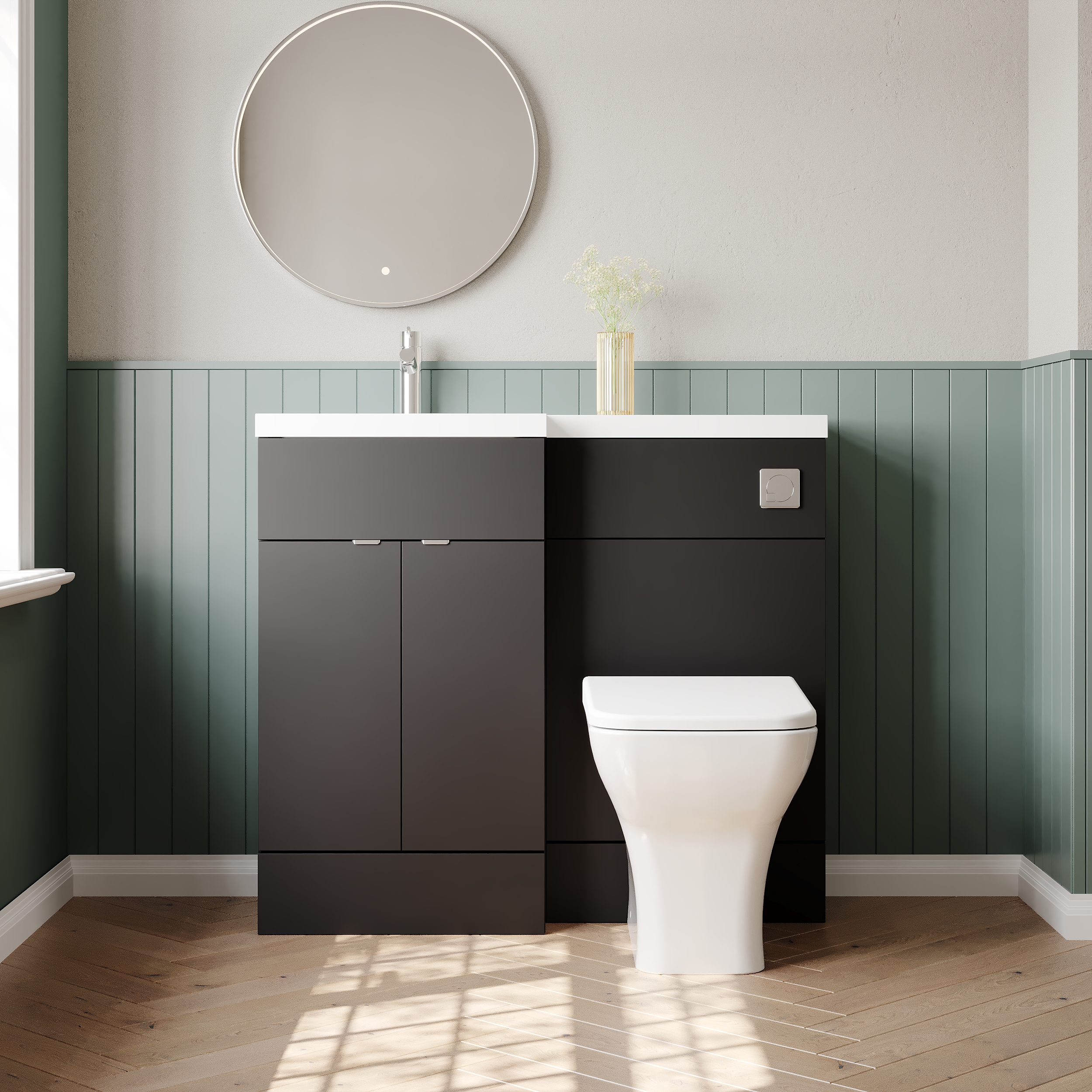 Hudson Reed Fusion 1005mm Left Hand Floor Standing 2 Door Vanity Basin & Toilet Combination With Handles