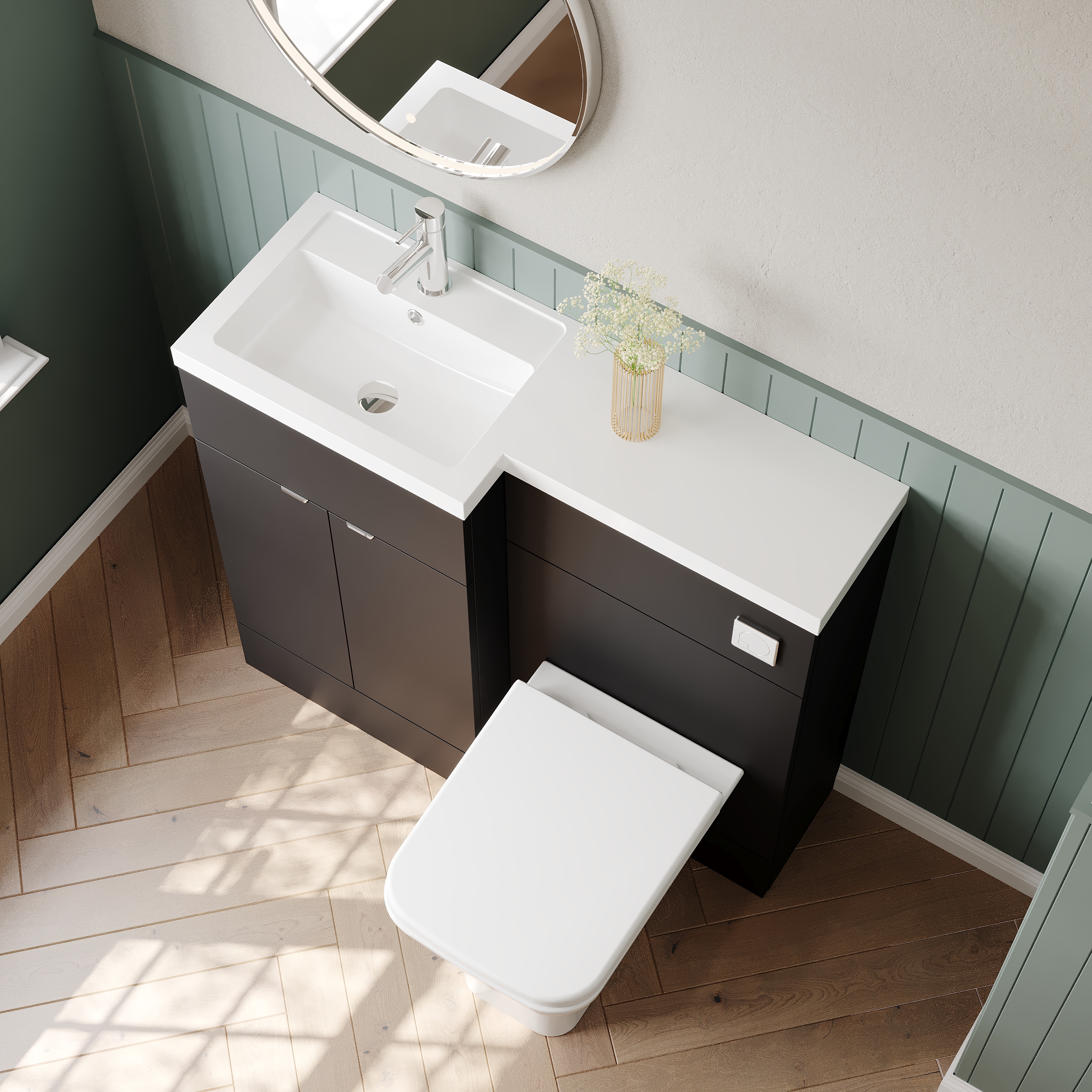 If you prefer a more glossy finish in your bathroom, why not opt for our fitted furniture in high gloss grey to add a contemporary twist