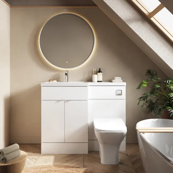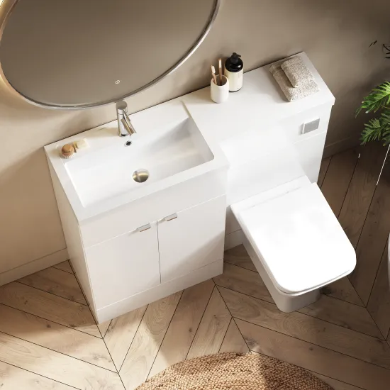 Hudson Reed Fusion 1100mm Gloss White Floor Standing 2 Door Vanity Basin & Toilet Left Hand Combination Unit