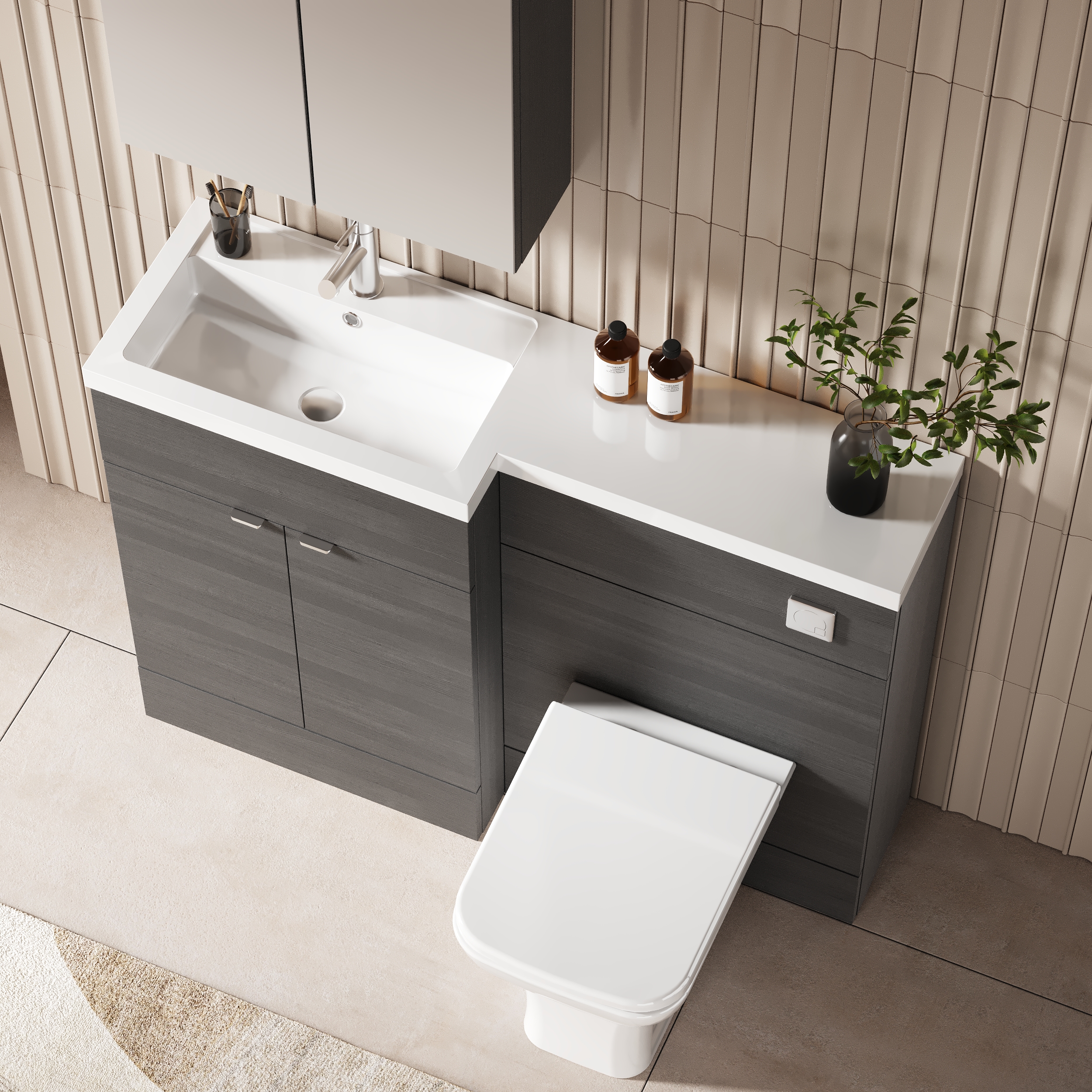 Hudson Reed Fusion 1200mm Anthracite Woodgrain Floor Standing Left Hand Vanity Basin & Toilet Combination