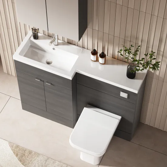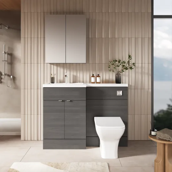 Hudson Reed Fusion Floor Standing 2 Door Vanity Basin & WC Left Hand Combination 1200mm - Anthracite Woodgrain