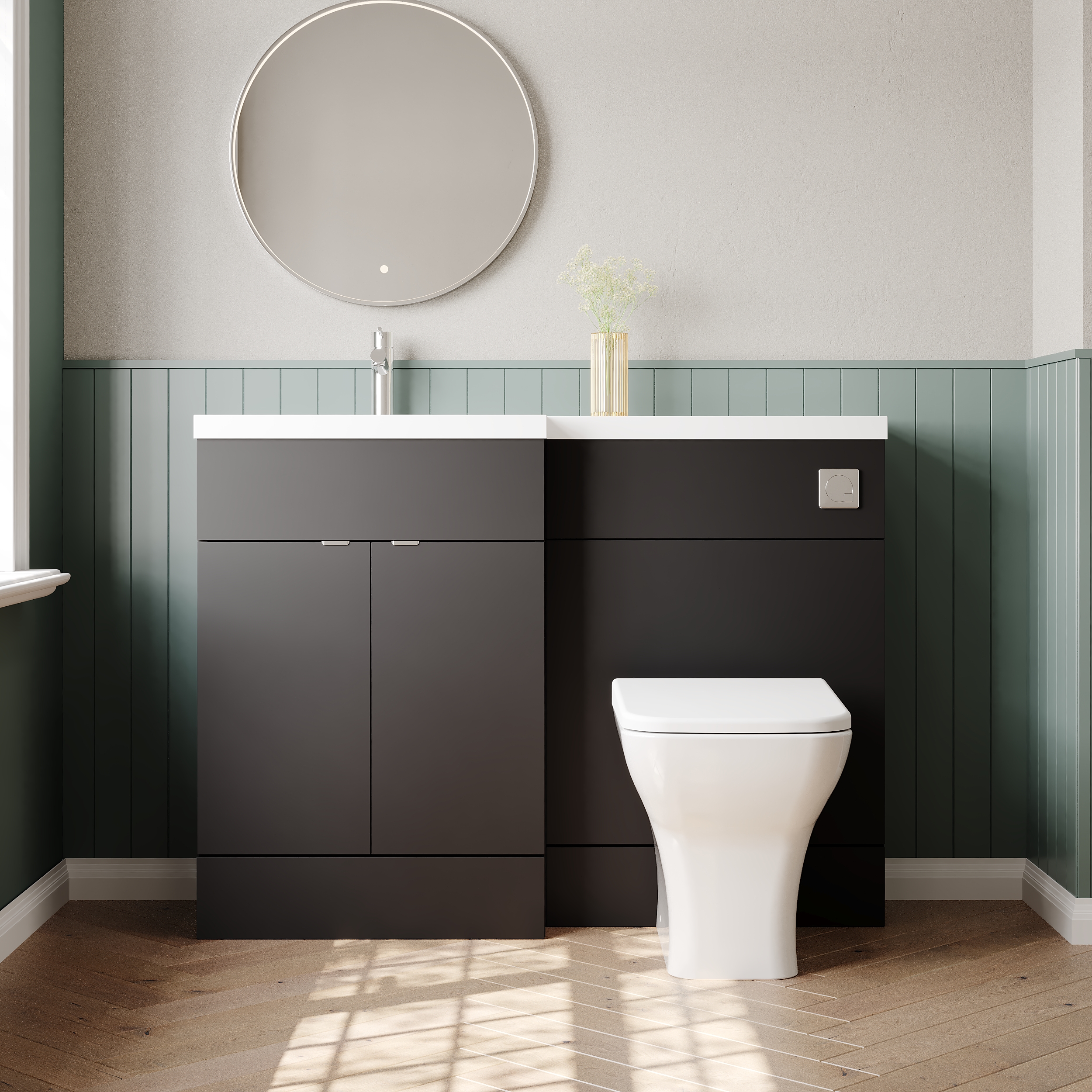 Hudson Reed Fusion 1200mm Anthracite Woodgrain Floor Standing Left Hand Vanity Basin & Toilet Combination