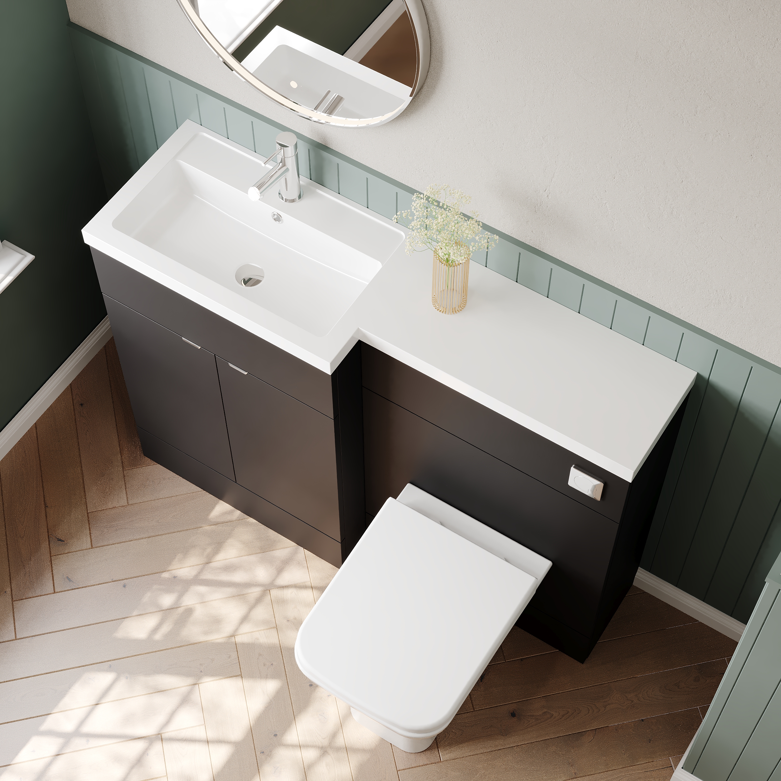 If you prefer a more glossy finish in your bathroom, why not opt for our fitted furniture in high gloss grey to add a contemporary twist