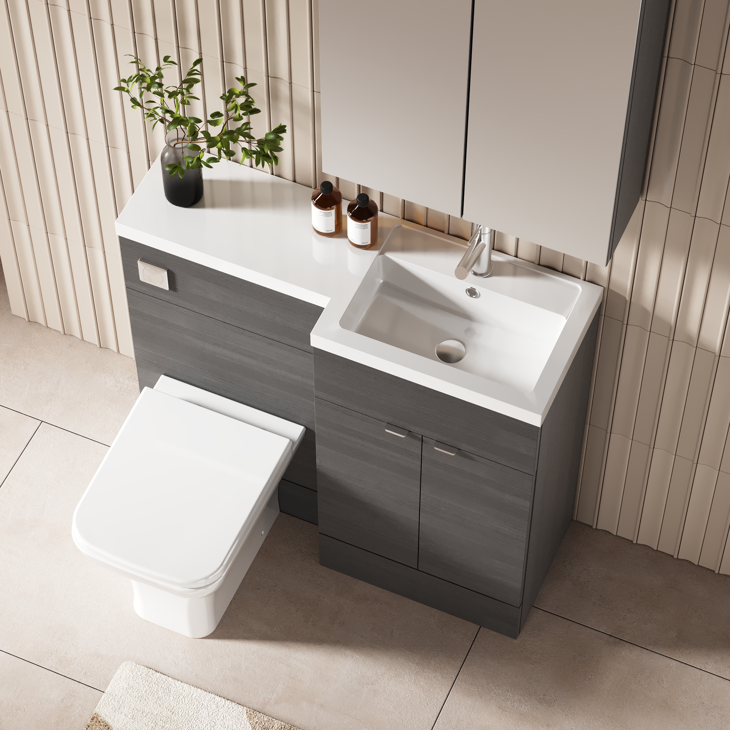 Hudson Reed Fusion Floor Standing 2 Door Vanity Basin & WC Right Hand Combination 1000mm - Anthracite Woodgrain