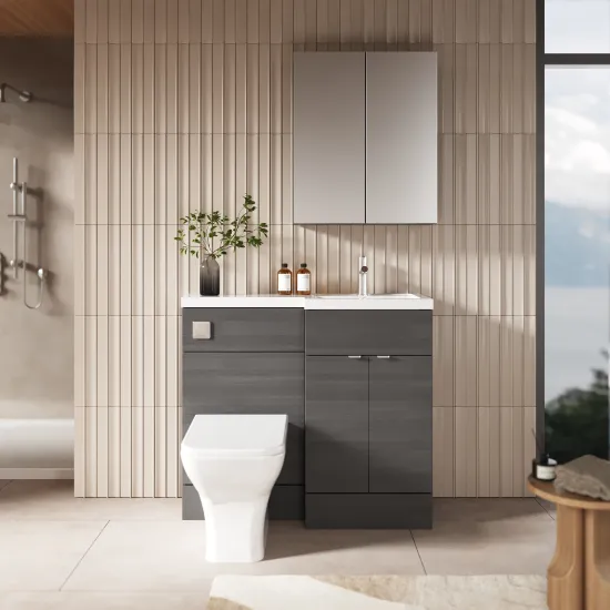 Hudson Reed Fusion 1000mm Gloss Grey Floor Standing 2 Door Vanity Basin & Toilet Right Hand Combination