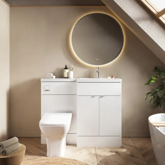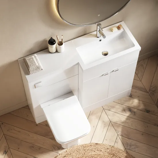 Hudson Reed Fusion Floor Standing 2 Door Vanity Basin & WC Right Hand Combination 1100mm - Gloss White