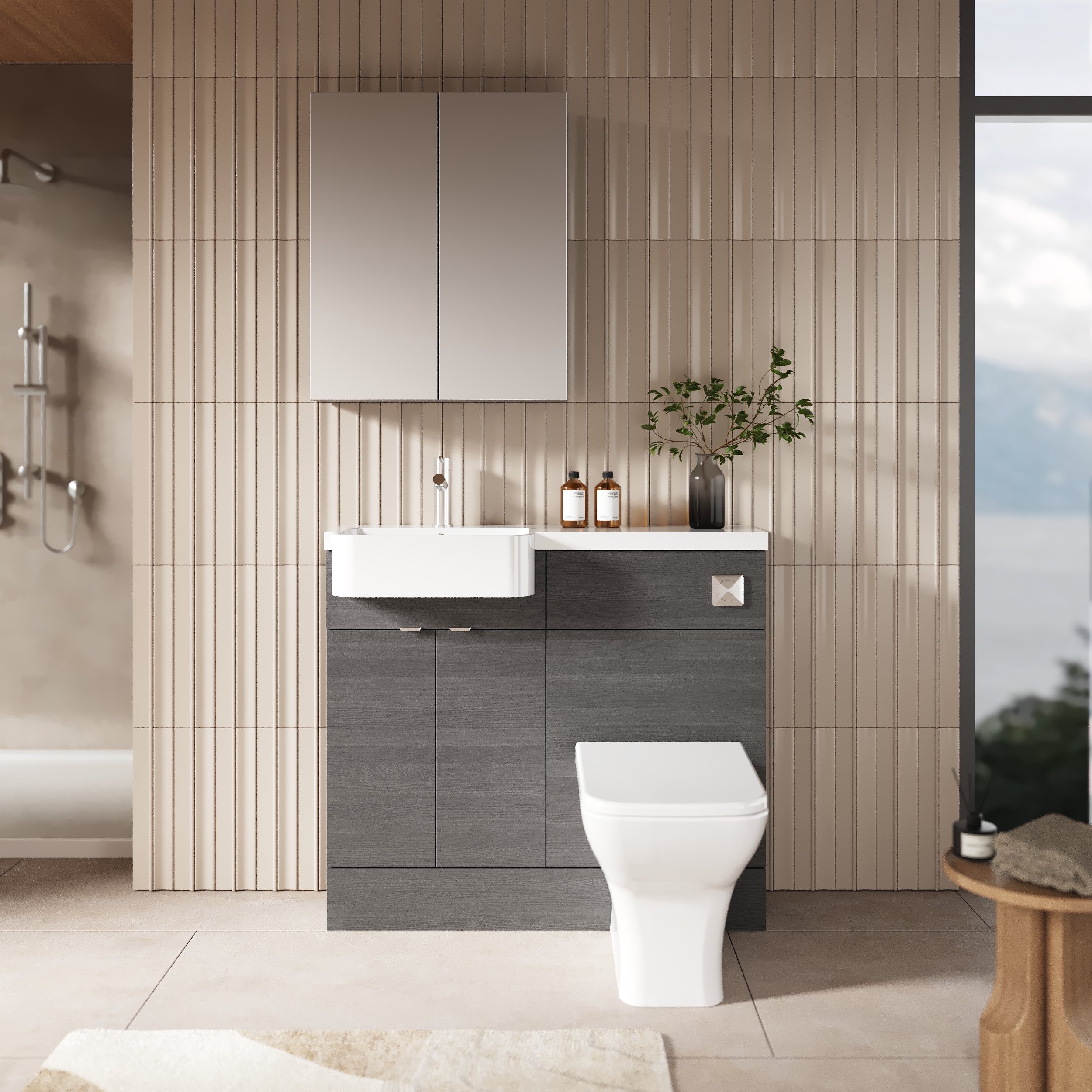 Hudson Reed Fusion 1005mm Anthracite Woodgrain Floor Standing Vanity Unit & Toilet Combination with Basin