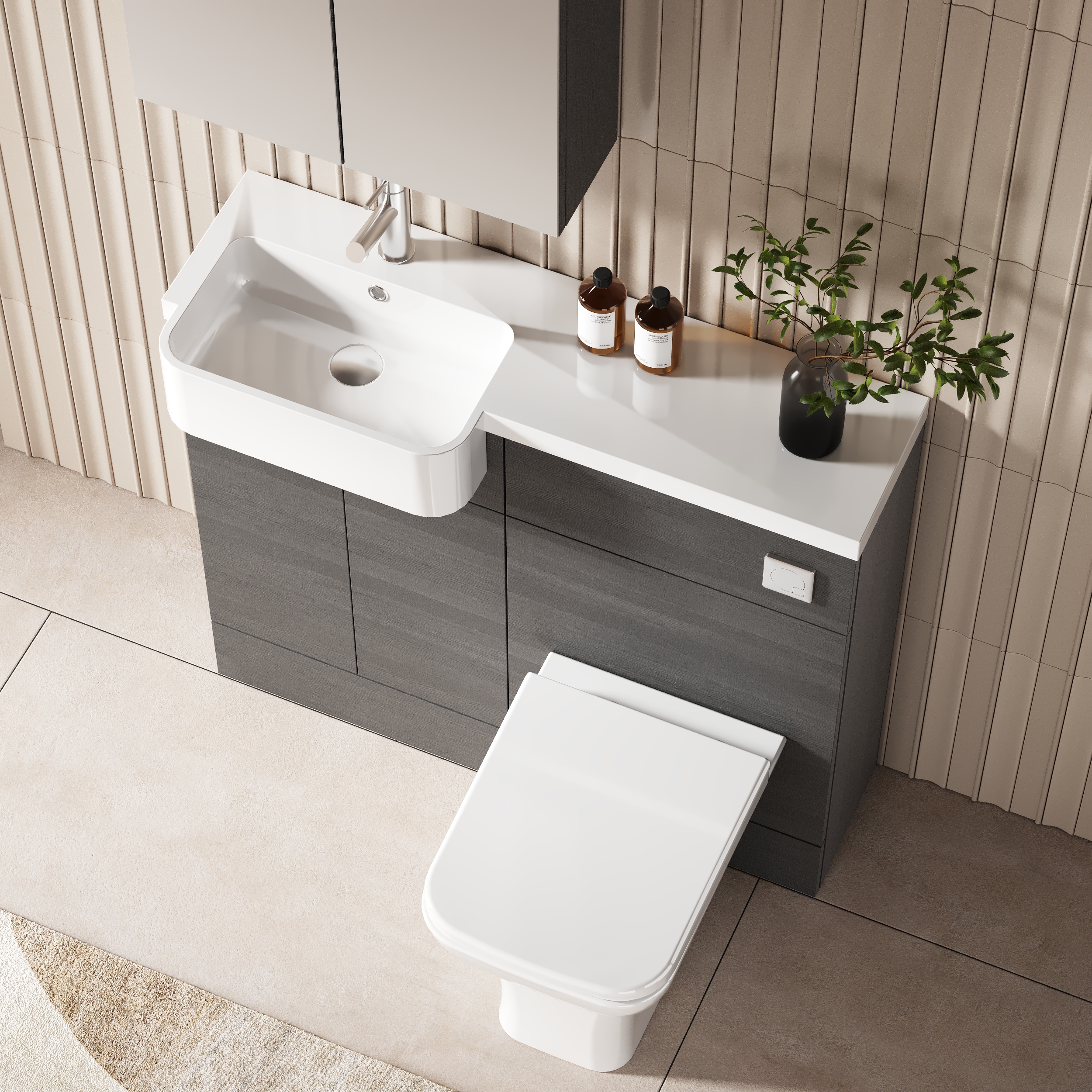 Hudson Reed Fusion Floor Standing 2 Door Vanity Unit & WC with Left Hand Semi Recessed Basin Combination 1000mm - Anthracite Woodgrain