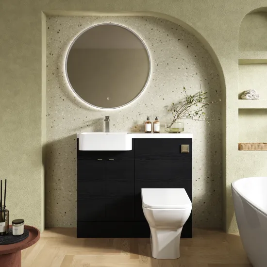 Hudson Reed Fusion Floor Standing 2 Door Vanity Unit & WC with Left Hand Semi Recessed Basin Combination 1000mm - Hacienda Black