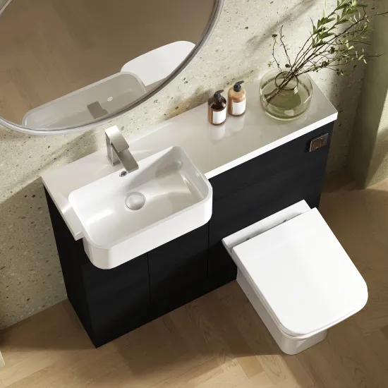 Hudson Reed Fusion 1000mm Charcoal Black Floor Standing Vanity Toilet Unit With Semi Recessed Basin