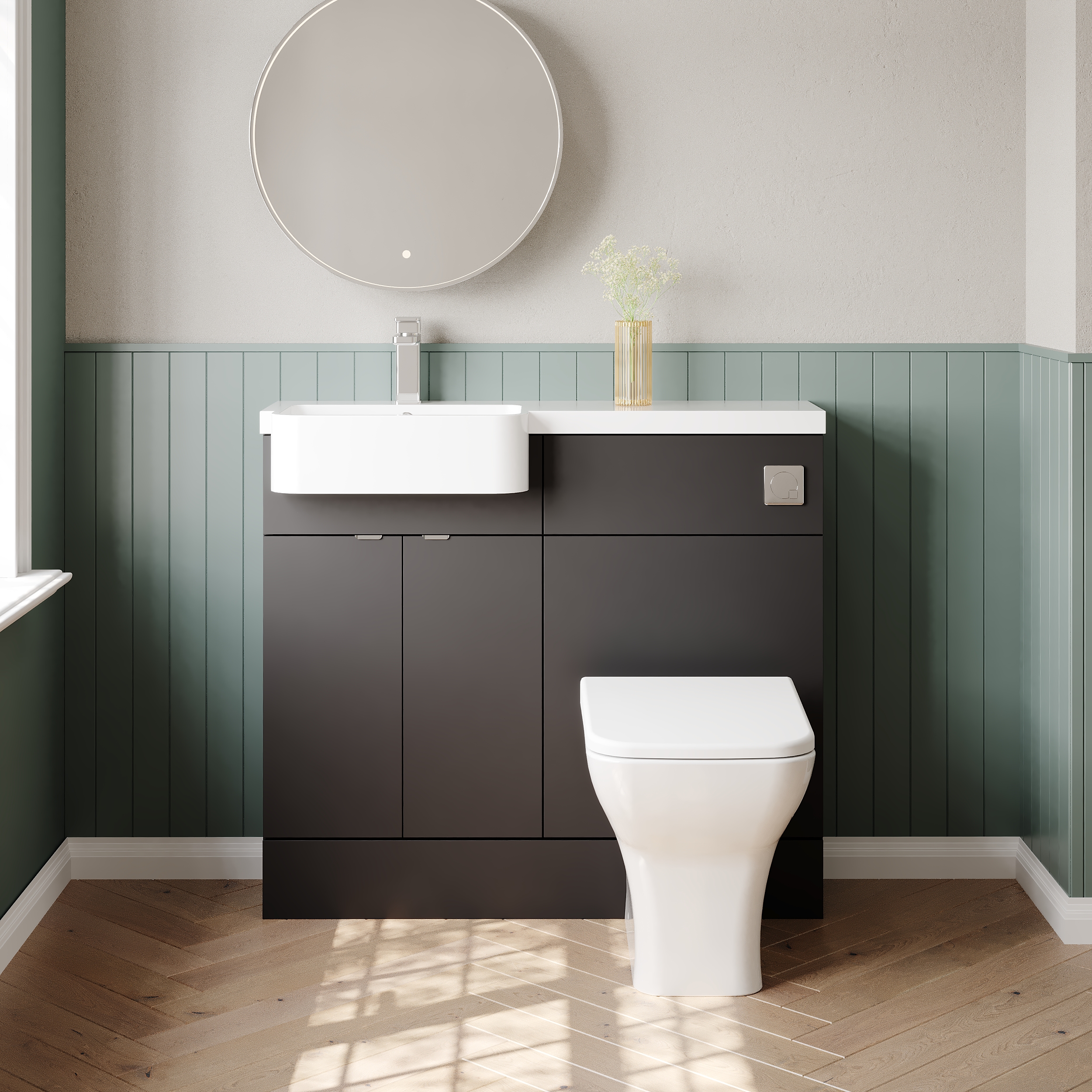 Hudson Reed Fusion 1005mm Gloss Grey 2 Door Floor Standing Left Hand Vanity Toilet Basin Unit