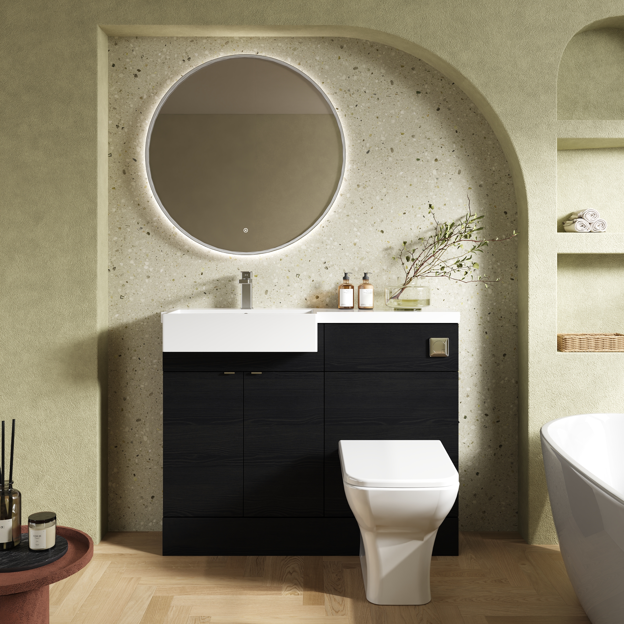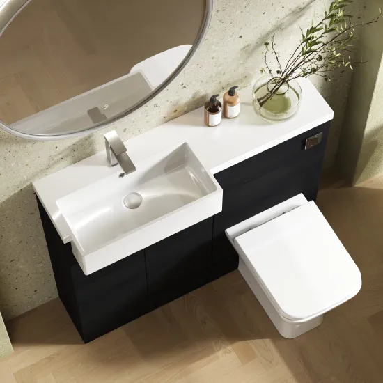 Hudson Reed Fusion Floor Standing 2 Door Vanity Unit & WC with Left Hand Semi Recessed Basin Combination 1100mm - Hacienda Black